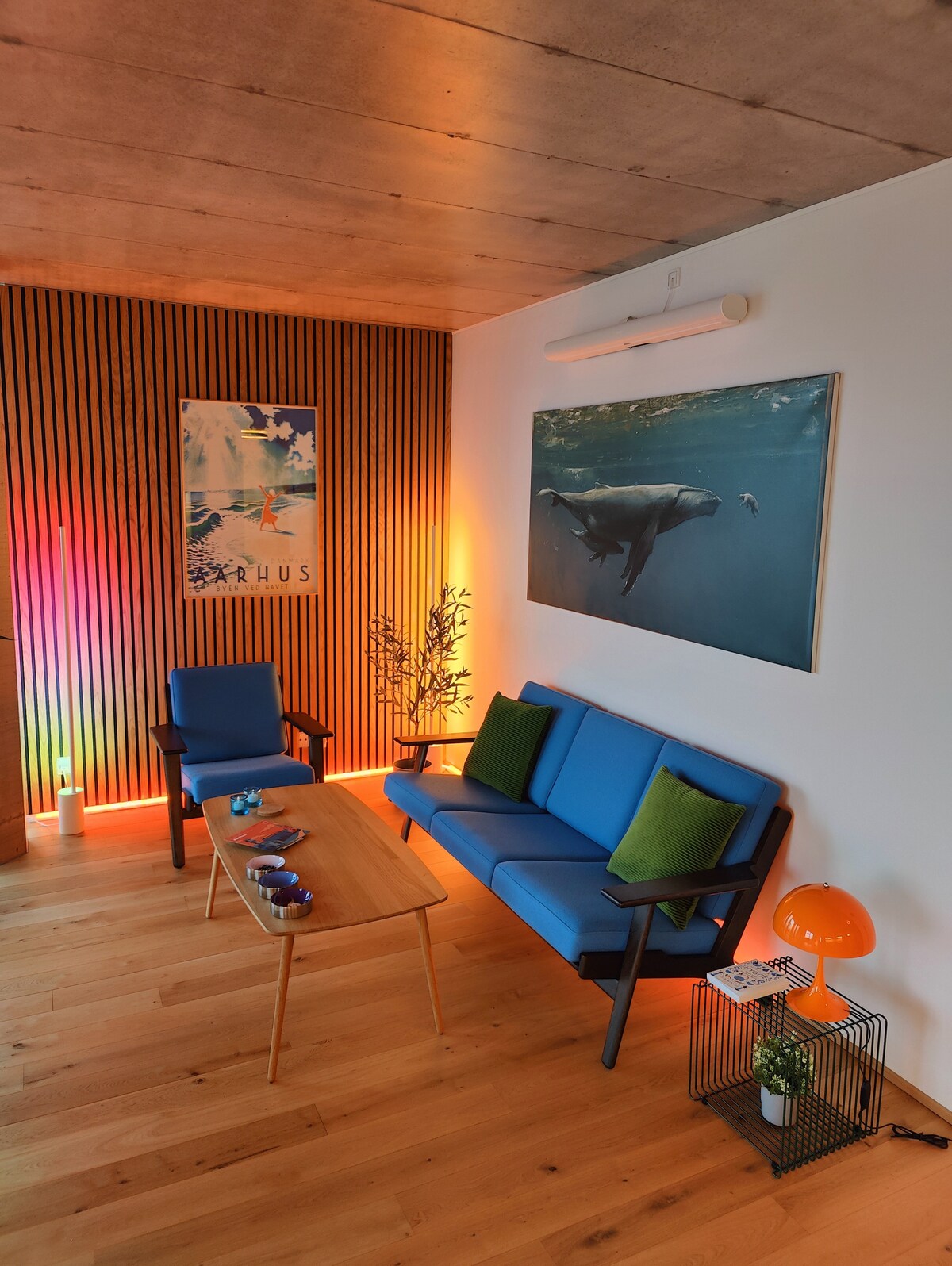 Stijlvol appartement in Klostertorvet Dicht bij cafés, restaurants en het stadsleven – perfect om het centrum van Aarhus en Aarhus Ø te voet te verkennen. Slaapplaatsen voor 4 personen met een tweepersoonsbed en een slaapbank voor 2 personen. ✅ Gratis privéparkeerplaats (max. hoogte 2m, geen bestelwagens/minibussen). ⚠️ Opmerking: gelegen op een levendig plein; weekendlawaai mogelijk.