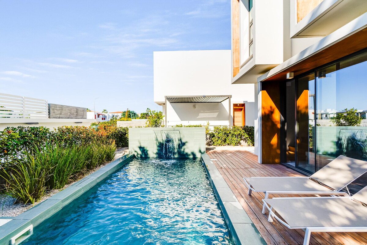 Luxe appartement met zeezicht, patio, zwembad, tv 65 inch