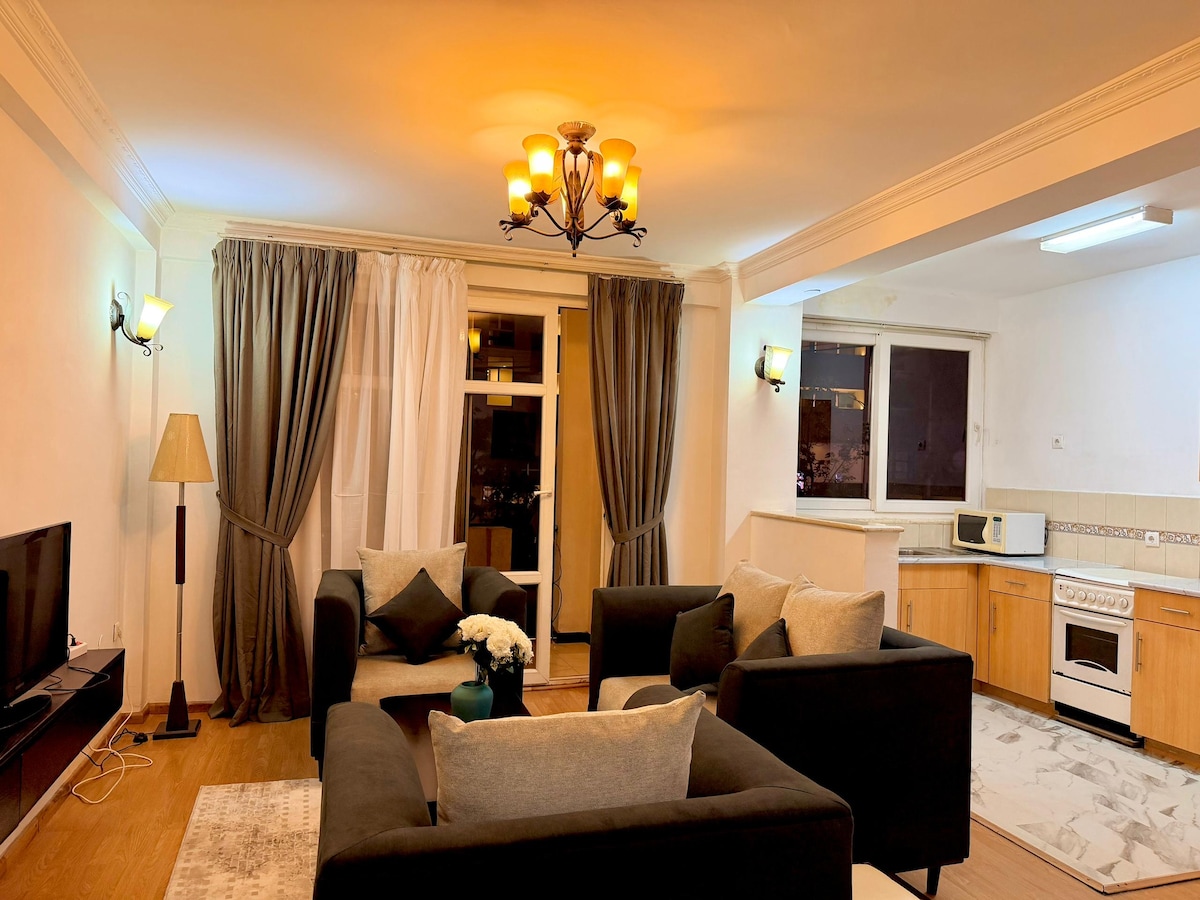 Luxurious apartment in Addis Ababa's Hayahulet area, featuring 2 bedrooms, 2 full bathrooms, a full kitchen, bar, living room with work area, dedicated parking, Wi-Fi, and backup generator. Perfect for business travelers or extended stays. Only 10 minutes from the airport and 5 from the train station.