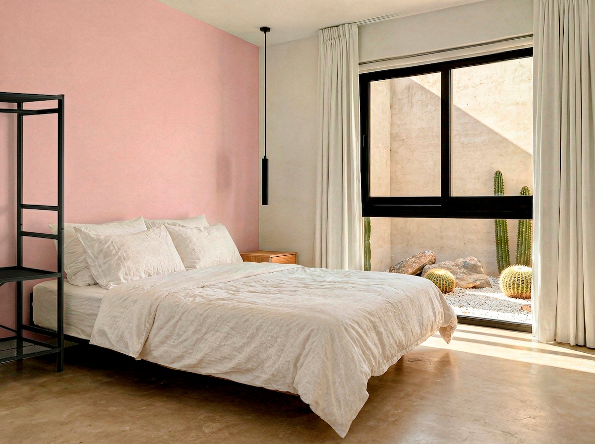 Estamos 1 min caminando del Foro de las Estrellas. Contamos con 15 habitaciones amplias cada una con baño privado e independiente, cocina completamente equipada, alberca climatizada, rooftop, estacionamiento privado y una atmósfera cálida que transforma cada estancia en una experiencia de descanso superior.