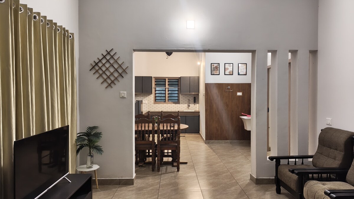 Elamkulam Penthouse biedt de perfecte mix van dorps sereniteit en stadsgemak, ideaal voor gezinnen, groepen en reizigers. Deze volledig ingerichte premium 3BHK (een niet-AC) beschikt over ruime kingsize en queensize bedden, moderne voorzieningen en een goed uitgeruste keuken. Gelegen in de buurt van bushaltes,treinstation, sportscholen en banken, garandeert het gemakkelijke toegang tot basisvoorzieningen. Attracties zoals Chottanikkara Devi Temple,Hill Palace, winkelcentra zijn vlakbij. Met een rustige sfeer, perfect voor een ontspannen gezinsverblijf.