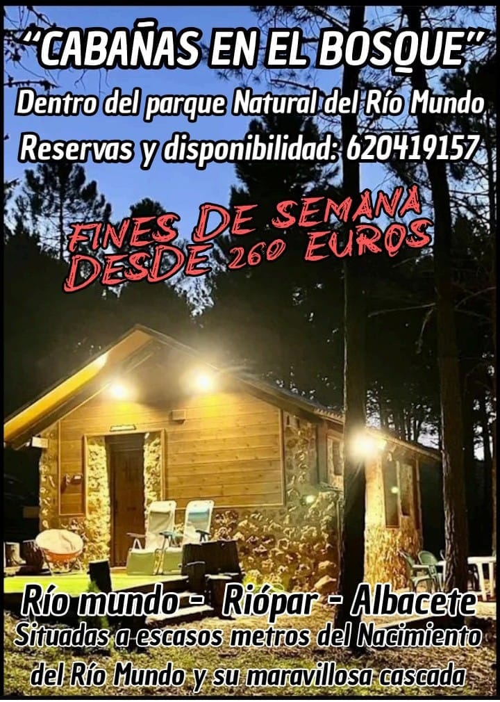 Cabaña en medio de la naturaleza, a solo 2,5km del nacimiento del Rio Mundo, un lugar espectacular para visitar. La cabaña dispone de todo lo necesario para una cómoda estancia, tiene dos habitaciones con cama doble y una buhardilla. Lo que realmente la hace destacable es su ubicación en pleno Parque Natural, donde puedes relajarte entre su naturaleza y hacer varias rutas preciosas que hay por alrededor. Lugar perfecto para disfrutar una romántica estancia en pareja o una escapada familiar.