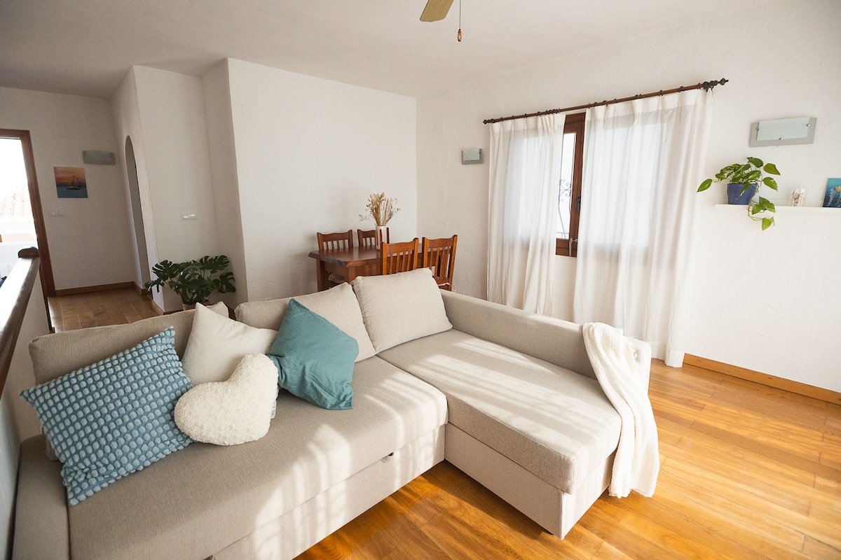 Welkom in Horizonte Azul, een gezellig nest met een verbazingwekkend uitzicht over de zee en de spectaculaire kliffen van de Moraig-baai. Gelegen in een mooie woonwijk, hebben je twee stijlvolle kamers individuele ingangen en zijn ze verbonden via een prachtige badkamer. Op je eigen schaduwrijke terras kun je een buitentafel en meubels met wastafel bereiden voor ontbijt of koude hapjes. Activiteiten? Boek een privé Pilates-les op het terrein of geniet van wandelen en andere sporten in de buurt. We kijken ernaar uit dat je blijft!