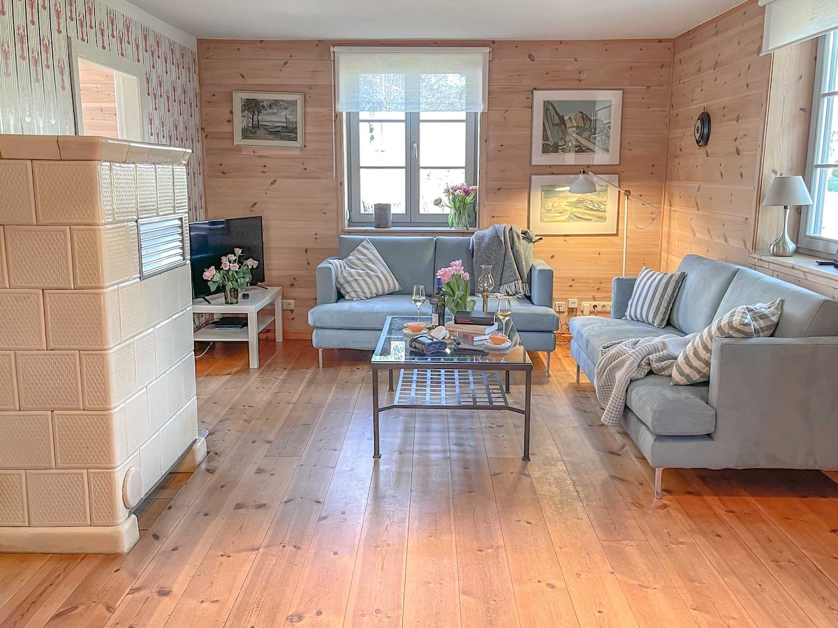 Ga zitten en relax – in deze rustige, prachtige omgeving. Vanaf de bovenste slaapkamer met uitzicht op Lake Neuwarper kun je de rode herten in de rietgordel zien in de schemering. Geniet van de open woonkamer, eetkamer met keuken en aanrecht. De houtkachel warmt op in de koude seizoen. Of werk aan de prachtige oude Biedermeier secretaresse. Het terras met natuurstenen nodigt je uit om te blijven hangen. Het ontbijt kan genieten van het ontbijt op het balkon.
