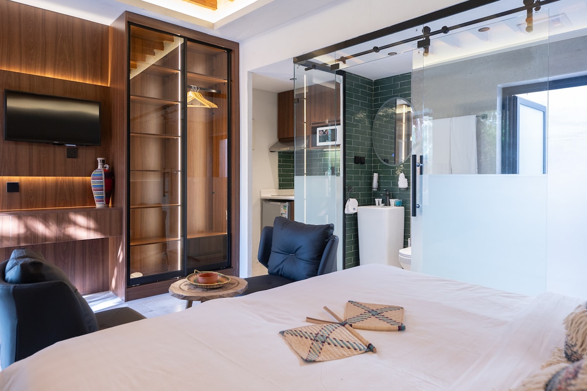 غرفة نوم واسعة وحديثة للإيجار، تحتوي على سرير كوين مريح، كنب، وثلاجة صغيرة. توفر خزانة ملابس وتسريحة للتخزين، وتضم وحدة تكييف، وحمام خاص مجهز بالكامل لإقامة هادئة ومريحة. Spacious, modern bedroom for rent, featuring a cozy queen bed, sofa, and mini fridge. Includes a wardrobe, dresser, split AC, and fully equipped bathroom for a comfortable, relaxing stay.