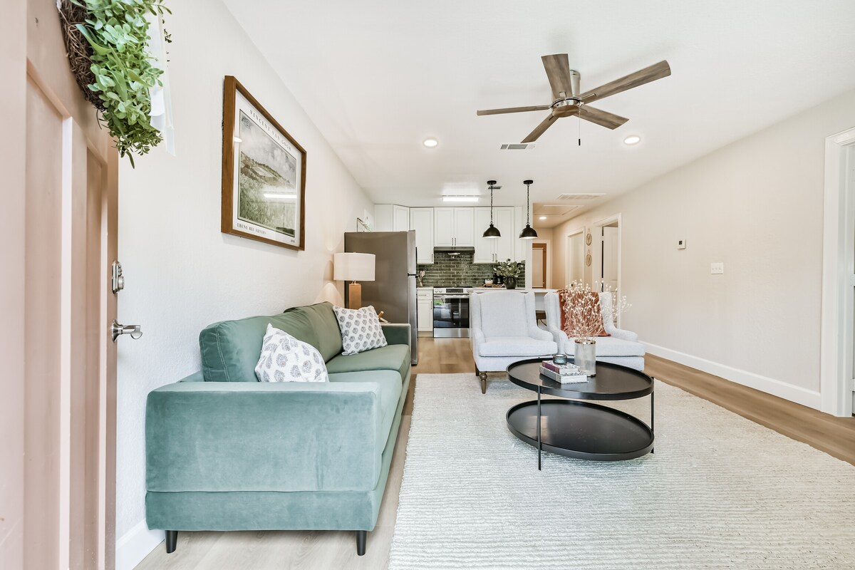 Private, serene & clean guesthouse w/everything you need in a spacious 700 sq ft. • Thoughtfully cleaned by your SuperHost • Fast Wi‑Fi (532 Mbps) • In‑unit washer/dryer • Workspace • Full kitchen w/essentials • Excellent AC/Heat • Cozy couch & recliner • 55" Smart TV with Hulu & Disney+ included • Private bathroom & shower stocked with essentials • Outdoor lighted gardens w/ soothing water features Completely Detached from Main House Modern recessed LED lighting Midway Houston/Galveston