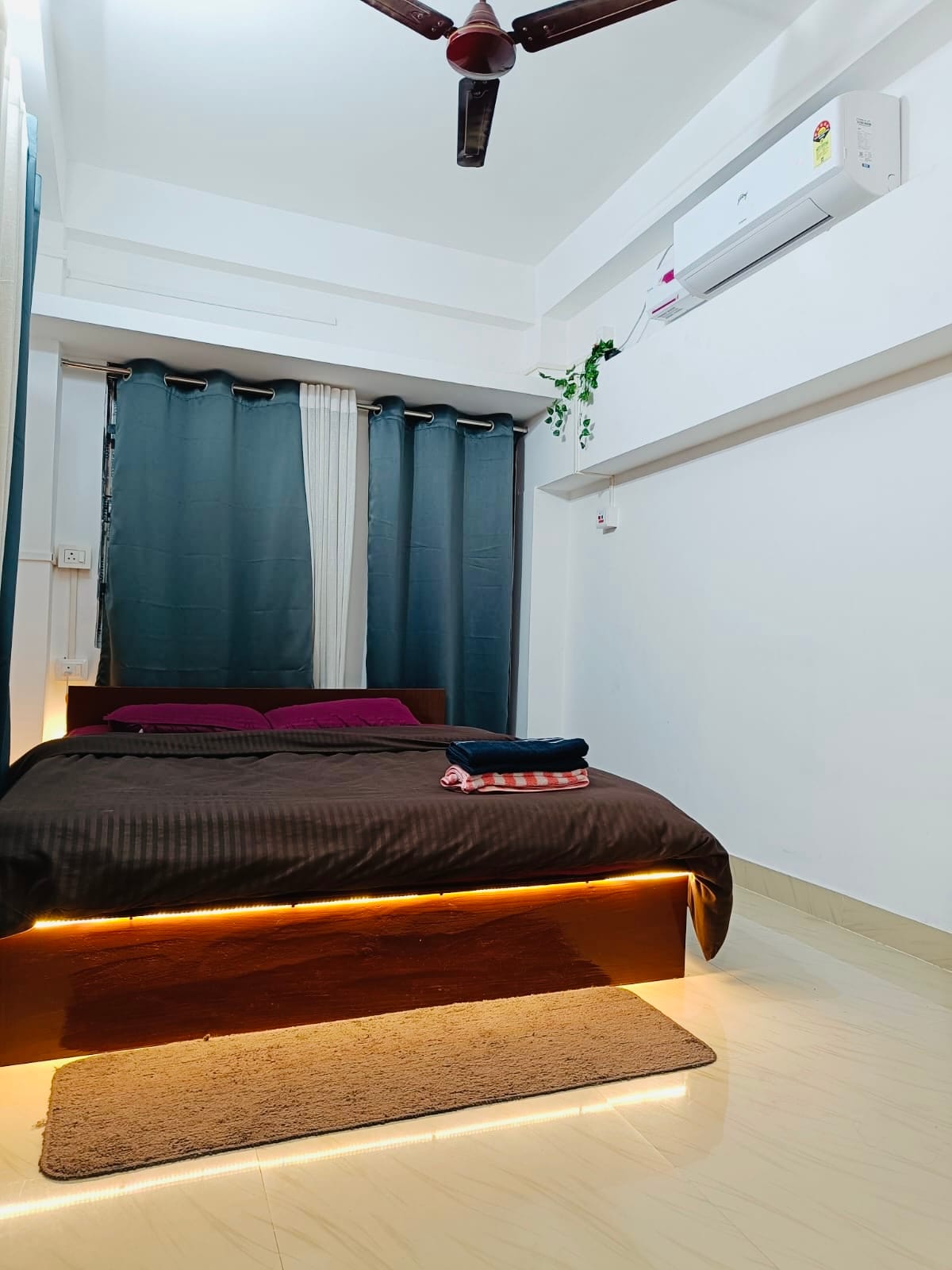 Welkom bij Aaijoy. Onze AC privékamer beschikt over een aangrenzende badkamer, keuken en balkon voor exclusief gebruik. Deze accommodatie is ontworpen voor comfort en gemak en is ideaal voor reizigers die privacy en moderne voorzieningen willen. Gelegen dicht bij de belangrijkste vervoersknooppunten en ziekenhuizen van Guwahati, zoals Downtown, GNRC, Pratiksha en Rahman. We bieden ook een privékamer zonder airconditioning met keuken, bad en balkon in hetzelfde pand. Als je liever een budgetvriendelijke optie hebt, bekijk dan onze andere advertentie op ons profiel.