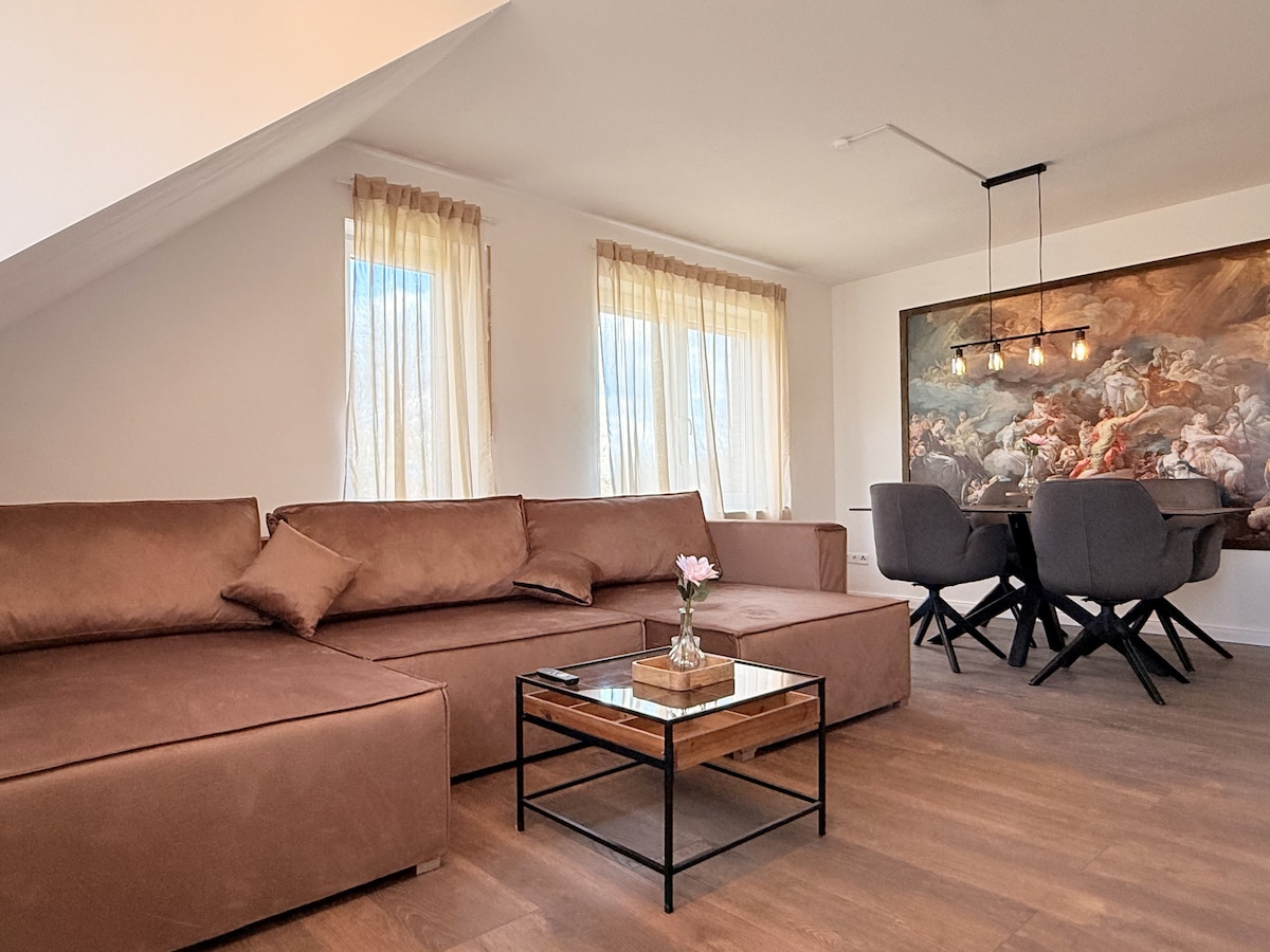 Stijlvol ingericht appartement op een rustige locatie. Perfect om te wandelen in het Teutoburgbos, of voor gezellige avonden op het terras, met uitzicht op de kleine tuin, die volledig omheind is. Het centrum van Ibbenbüren ligt op 3 km afstand en op loopafstand. Er is een volledig automatisch koffiezetapparaat beschikbaar. Een tweepersoonsslaapkamer is beschikbaar en de bank kan ook worden gebruikt als slaapbank voor een andere persoon. Direct parkeren is voor het huis.
