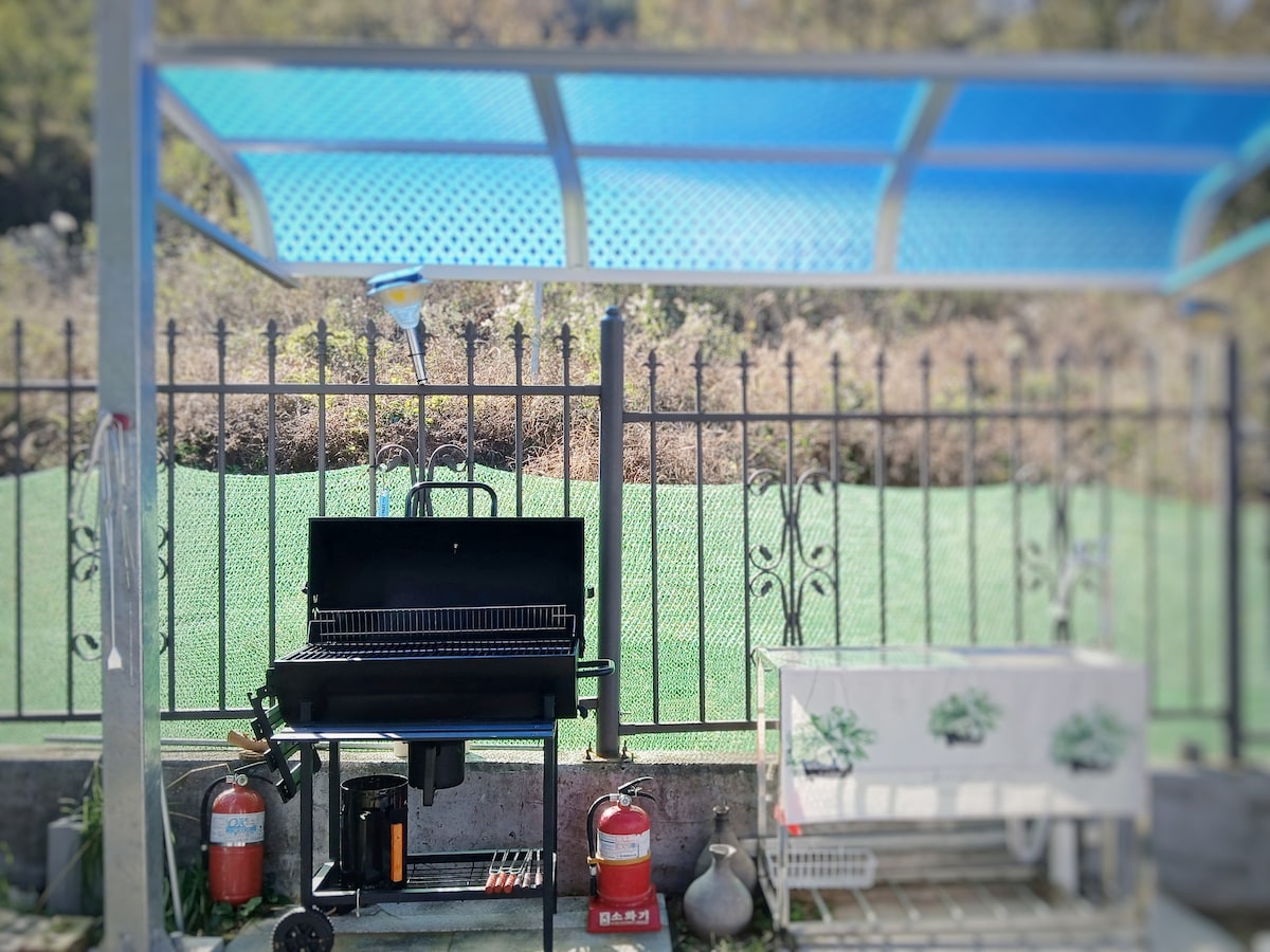 Dit is een 'twee verdiepingen tellende eengezinswoning' in Waryong-myeon. Onlangs kun je door de bouw van het dek buiten barbecueën op een warme plek ^ ^ Er is een gazon, en als het 's nachts wordt verlicht, kun je genieten van een buitenbarbecue in een goede sfeer, en het is een helende accommodatie waar je kunt genieten van de geur van het seizoen.'◡ '✿ 12 minuten afstand: Andongho Water Leisure Marin Op 25 minuten afstand: Imhaho Water Leisure Town Inchecken: 15:00 PM Uitchecken: 11.00 uur. - Wasserij beddengoed, handdoeken - Koelkast, magnetron, inductie, brander, waterkoker, pan, koekenpan, servies (kopjes, kommen, lepels en eetstokjes, enz.) * Voorzorgsmaatregelen * - Roken is verboden (niet toegestaan in het huis, zoals toiletten) - Koken beschikbaar - Buiten houtskoolbarbecue - In geval van schade aan de rekwisieten, items en beddengoed in de accommodatie, brengen we je onvermijdelijk een aankoopvergoeding in rekening. - Het is goed als je geen aandacht besteedt aan het lawaai!! - Kinderen zijn toegestaan. * Toegang voor gasten * Dit is een eengezinswoning met toegang tot de hele ruimte op de eerste en tweede verdieping.