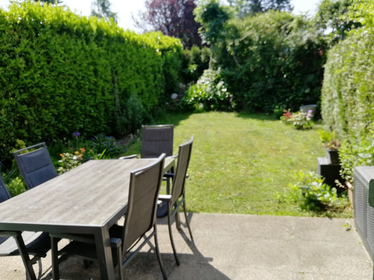 Rijtjeshuis 120m, houten parket, ingerichte keuken open op woonkamer(oven, magnetron, vaatwasser, koel-vrieslade, inductie en gasfornuis, broodrooster, waterkoker, raclette en fonduemachine) 4 grote kamers 18m, 2 doucheruimtes, 2 toiletten, wasmachine, gesloten tuin die het mogelijk maakt om 2 auto 's in te voeren. Terras, tuinmeubilair, barbecue, basketbalveld, diverse spelletjes. Rustige woonwijk dicht bij alles, station, meer, stadscentrum, snelweg, stations..