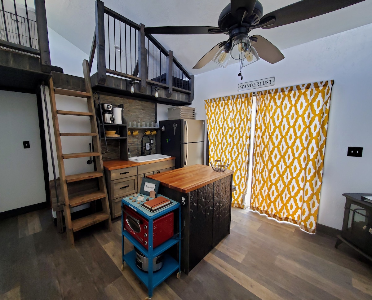 Ervaar ons luxe Tiny Home, genesteld in het landelijke Zuidelijke Utah, herrock kliffen in de verte, drukke Melkweg luchtlandschap, in een rustig klein gehucht aan de rand van Capitol Reef National Park. Van een afstand ziet de Tiny Home er een beetje ... klein - maar eenmaal binnen, is er een gevoel van ruimtelijkheid en licht - hoge plafonds en veel ramen. Het is echt ideaal voor 1-2 personen, maar er is ook een comfortabele slaapbank voor een 3e persoon en een lange gewatteerde bank voor een vierde. Groot terras om naar sterren te kijken!