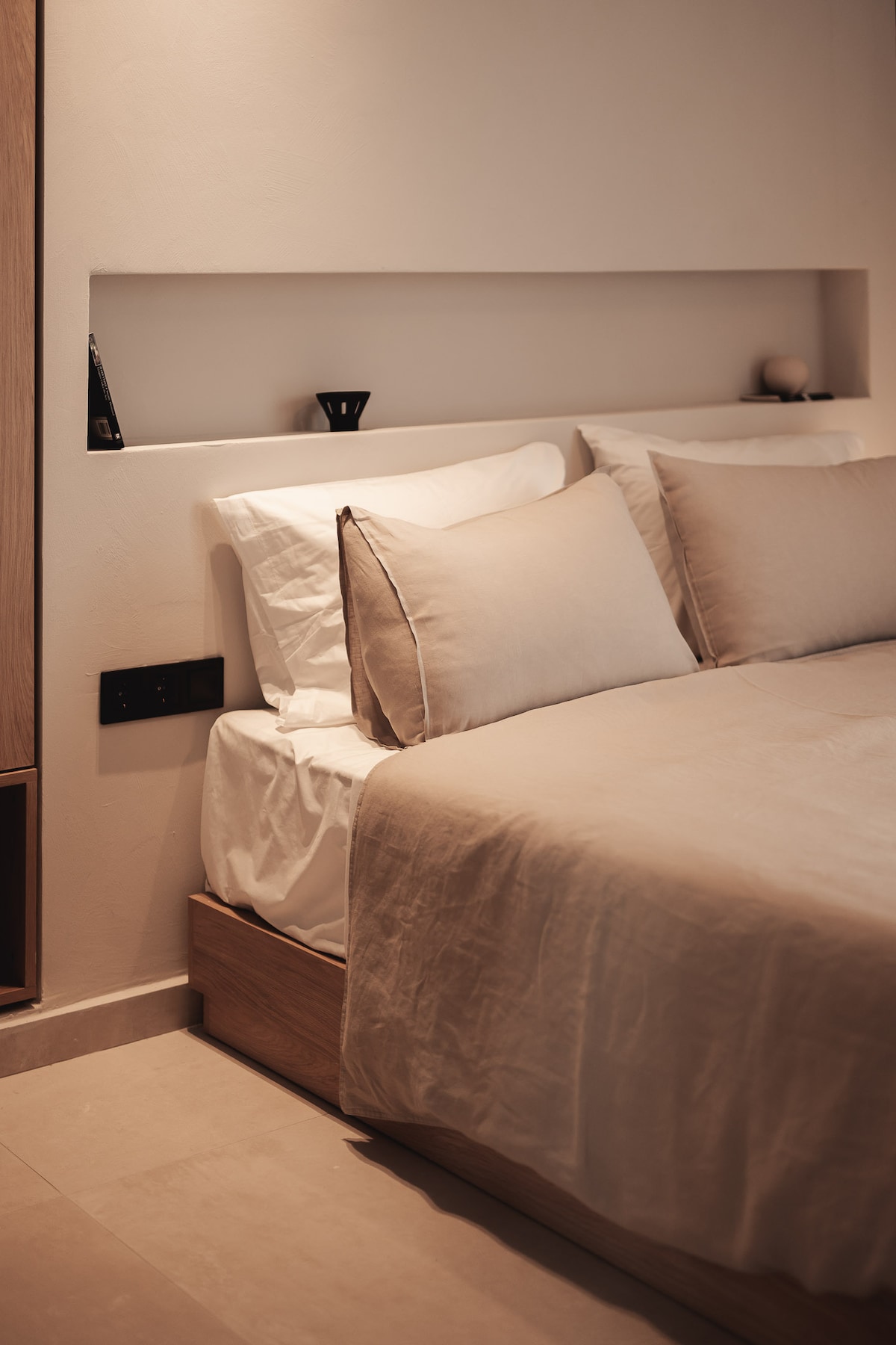 Om Living Afitos is a self-catered holiday complex located in the charming village of Afitos, Halkidiki. One of the greatest advantages of Om Living Afitos is its prime location. It is just 350 meters from the crystal-clear Varkes Beach and only a 5-minute walk from the center of Afitos, where you can find restaurants, shops, and bars. Om Living Afitos offers 10 suites, all thoughtfully designed with the same aesthetic vision and dedication to comfort.
