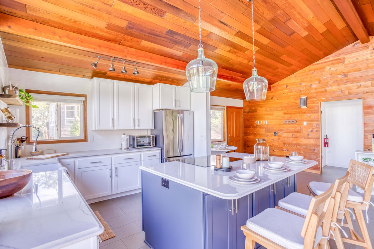 'Blue Pacific Retreat' is een eigentijdse ruimte in Arch Cape met een panoramisch uitzicht op de oceaan, een rustige en serene omgeving. Ontworpen door een architect en interieurontwerper is de onlangs gerenoveerde ruimte (2025) verfijnd, smaakvol en uniek. Luxe voorzieningen; verwarmde vloeren, luxe beddengoed, uitzicht op de oceaan vanuit de woonkamer en het westelijke dek, gevulde, volledige keuken en NW-kunst. Dit is een appartement met 1 slaapkamer boven een vrijstaande garage in een rustige doodlopende straat en ligt op slechts 9 minuten van het prachtige strand Arch Cape.