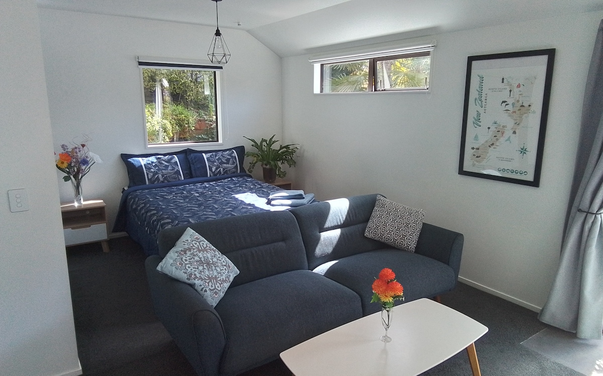 Welkom in onze moderne oase! Ervaar luxe in ons nieuw gebouwde studio-appartement met een prachtige Valentino betegelde badkamer met dubbele douches, vloerverwarming en een verwarmde handdoekenrek. De sfeer wordt versterkt door massief houten vloeren en een gezellige haard in de wintermaanden. Geniet van ontspanning op je eigen achterdek, compleet met een luxe zelfstandig bad. Ondertussen biedt het voordek een sereen uitzicht op de tuin op het Arrowtown-reservaat, met de rustige rivier als achtergrond.