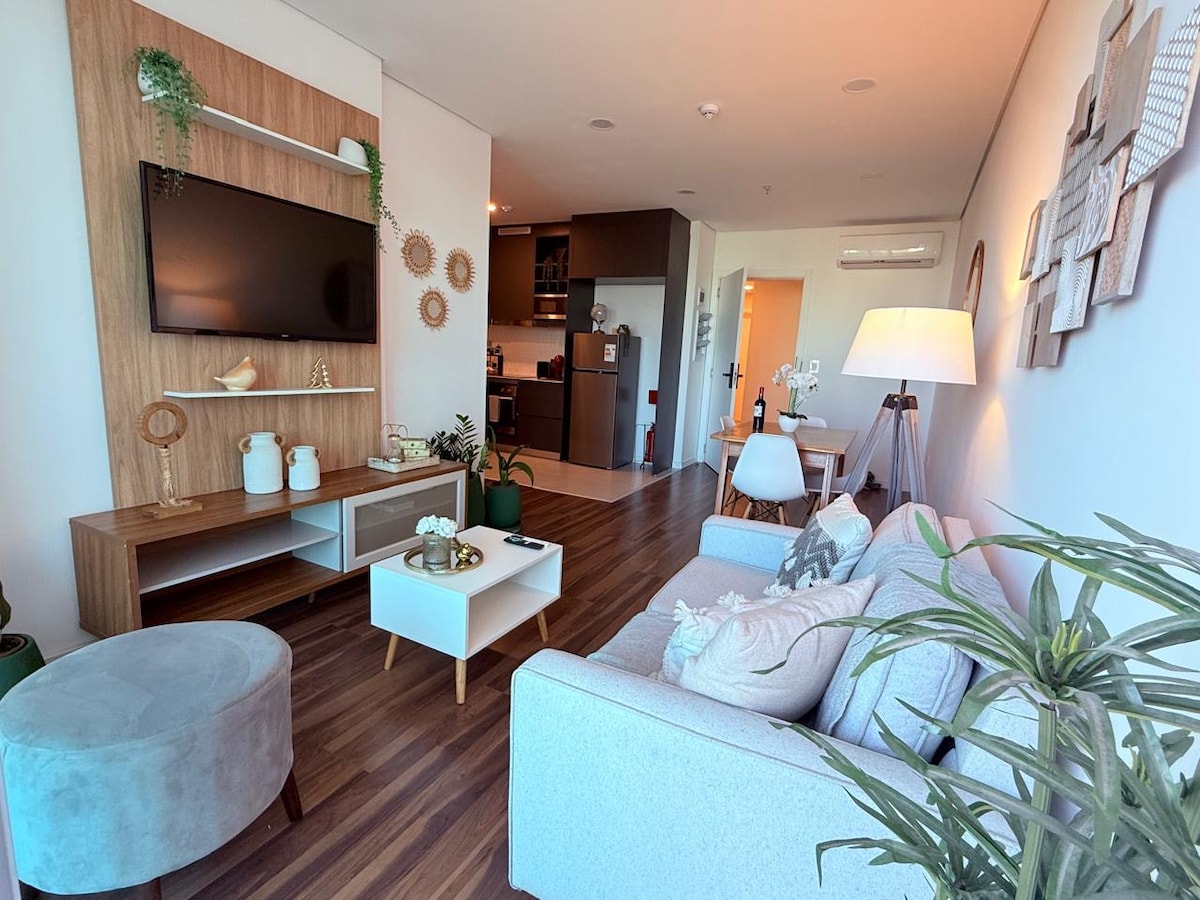 Een kamer, Airconditioning, volledige kitchenette met alles wat je nodig hebt, sommier en lakens van 1800 draad tellen, balkon met grill voor een rijke barbecue! Wifi. 24-uurs beveiligingsgebouw, wasserette, wasserette, zwembad, zwembad, fitnessruimte, lounges. 2 km vanaf winkelcentra, meters van restaurants en de meeste bedrijfskantoren. Er is een supermarkt in de buurt waar je alles vindt, evenals apotheken en ziekenhuizen. De omnibus terminal ligt op minder dan 5 km afstand en de luchthaven ligt op 15 km afstand