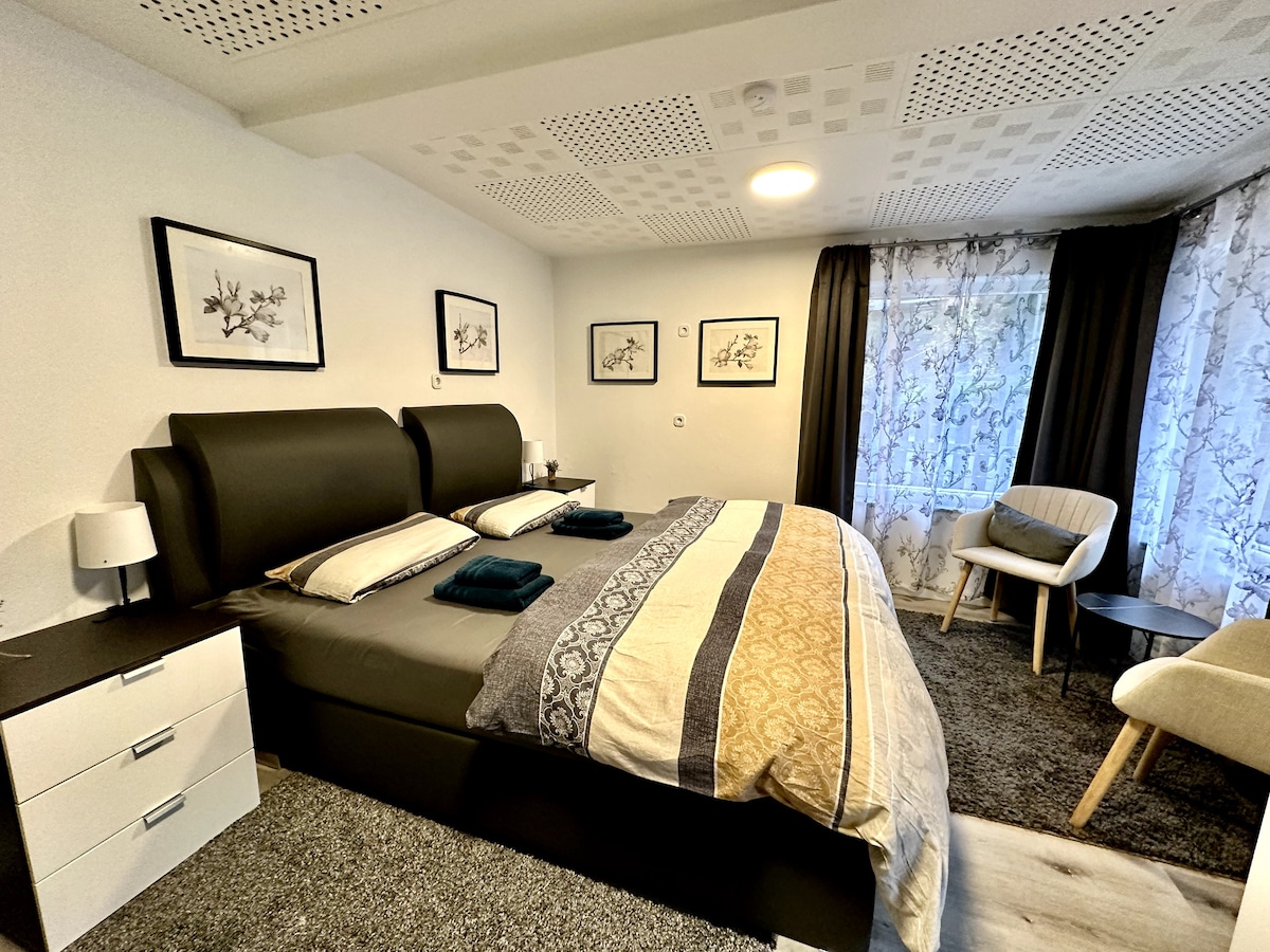 Het zeer gezellige appartement is gelegen op de begane grond van een zeer charmant voormalig molenpark direct aan de pittoreske rivier Wiesent. Het is volledig beschikbaar voor gasten en biedt met twee aparte slaapkamers zeer royale ruimte voor 4 personen. Het marktplein van Ebermannstadt en de aangrenzende gastronomie liggen op 10 minuten lopen afstand