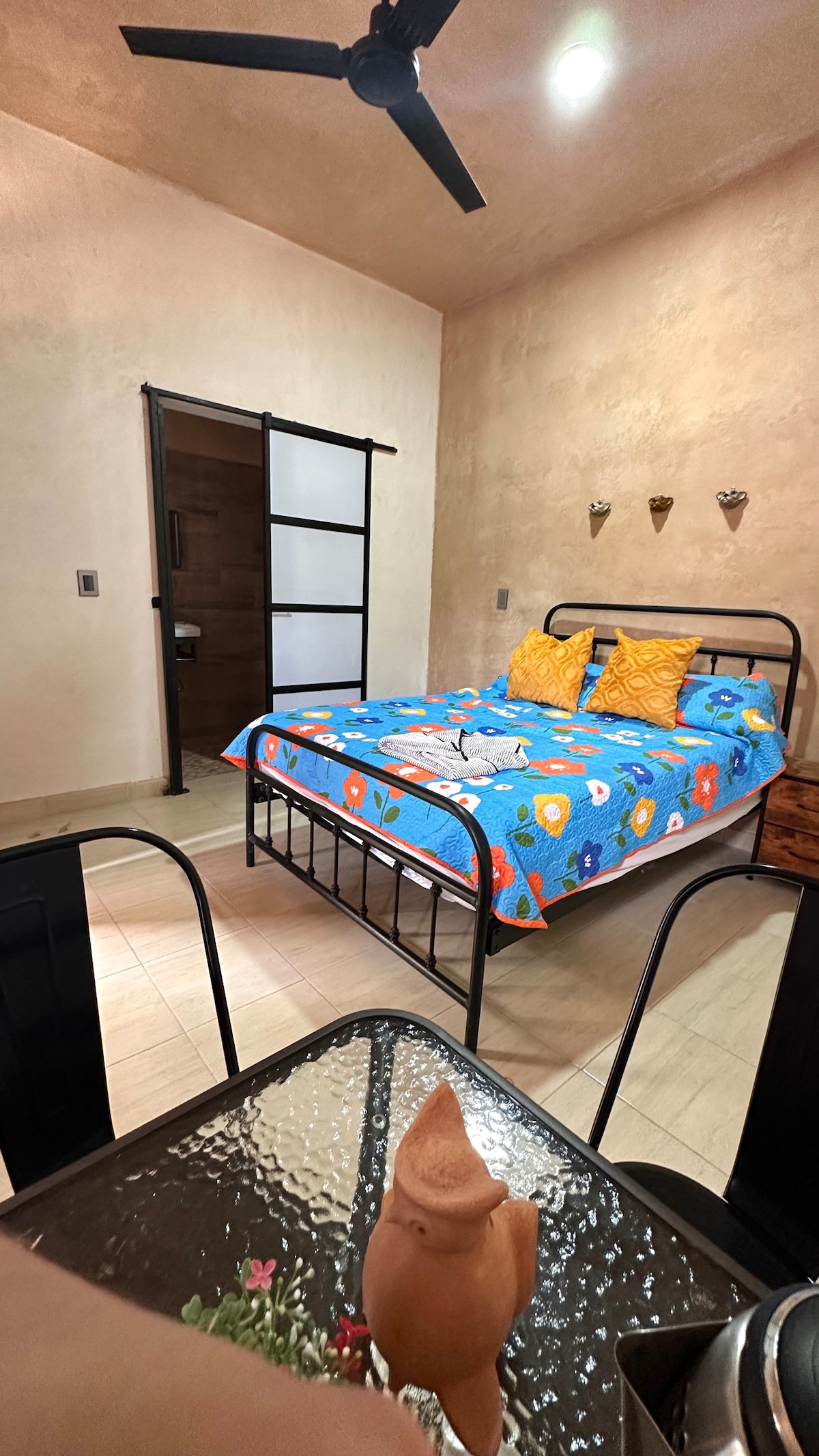 Una habitación diseñada para el descanso que recoge colores e imágenes del estado de Chiapas. Cierra las puertas y disfruta de la comodidad y calidez que la anfitriona ha diseñado para ti.