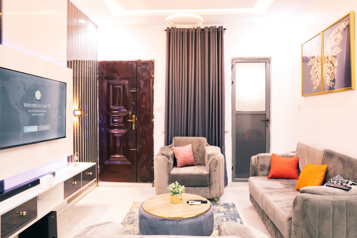 Dit mooie nieuw ingerichte appartement met 3 slaapkamers en suite is gelegen in een beveiligd omheind landgoed met 24-uursbeveiliging op Ipaja Road, Lagos. De gemeenschap is erg rustig en de sfeer is rustig. Het appartement is volledig ingericht met een tv, DSTV, airconditioning en ventilator in de woonkamer en slaapkamers. De keuken is volledig uitgerust met moderne apparaten zoals een snelkookpan, rijstkoker, elektrische blender, broodrooster, waterkoker, heerlijk kookgerei, bestek en alle servies dat nodig is om te koken.