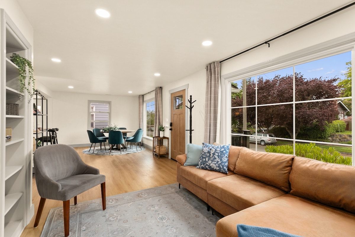Relax at Sunshine House! This 2-bedroom retreat offers 1000 sq ft of peaceful space. Enjoy a well-equipped eat-in kitchen, inviting living room, and modern amenities like Wi-Fi and Roku. The bathroom features a slipper tub/shower. Bedrooms offer plush beds & soft linens. Unwind in our fenced yard, featuring a propane firepit and comfy seating for cozy evenings. A doggy door leads to a secure, fenced dog run. Close to Golden Gardens Beach, Sunset Hill, and vibrant Ballard. Dog-friendly home!