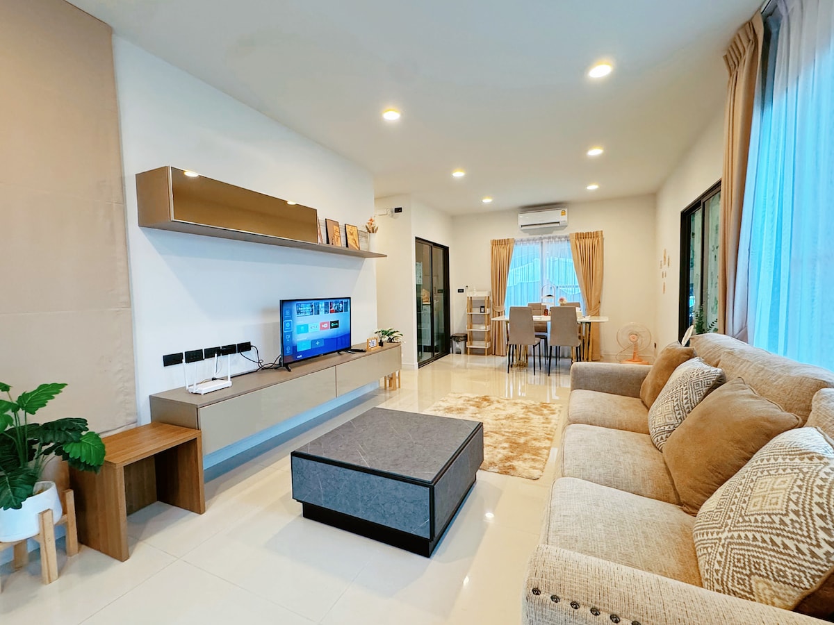✨ Elegante woning in resortstijl te huur in Bang Khun Thian (Rama 2) 🌿 3 slaapkamers, 4 badkamers, volledig ingericht met ruime woonkamer, eigen tuin, snelle wifi, kleine keuken maar volledig uitgerust en 2 parkeerplaatsen (ruimte voor 1 auto van de host). Gelegen in een rustige, laagdichte omheinde gemeenschap met 24/7 beveiliging, zwembad, fitnessruimte en clubhuis 🏡🏊♂️ Perfect voor gezinnen of expats die comfort en rust zoeken. Dicht bij Central Rama 2, verse markten ♻️ Schoon en ordelijk afvalverwerkingssysteem. Grab, LINE MAN en Bolt ondersteund 🚗
