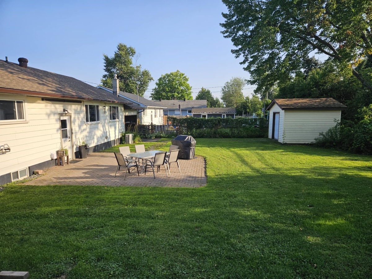Gelegen in een vriendelijke, stille, boomrijke buurt aan de oostkant van Sault Ste. Marie, wij bieden een moderne, lichte en mooie ruimte. Dit is de benedenverdieping van een uitloopbungalow met 1750 vierkante meter, eigen ingang en een overdekte patio voor buiten loungen. Gratis WiFi, Bell-tv, wasserette en parkeerplaats zijn allemaal inclusief. Deze woning bevindt zich op een groot terrein met de achtertuin voor privégebruik door gasten. Minuten naar het centrum, de locatie is perfect voor iedereen die het gebied bezoekt!