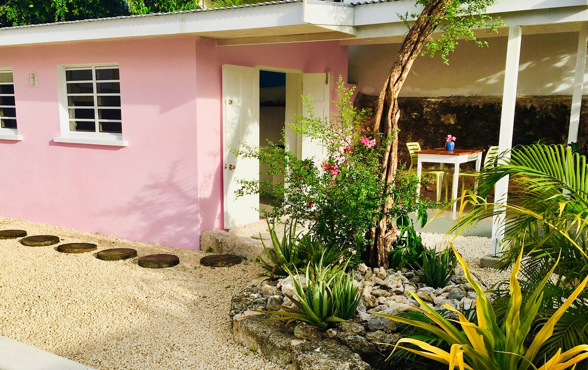 Onlangs gerenoveerd huisje met 1 slaapkamer gunstig gelegen in Dover op een steenworp afstand van het Sandals resort en het populaire Dover Beach. Alle accommodaties zijn nieuw en het decor is modern en tropisch. Er is parkeergelegenheid en er is een grote overdekte galerij met een keuken en een grote tuin met een mangoboom, kokospalm en veel tropische bloemen. Je bent slechts een wandeling van verschillende bars, restaurants, boodschappen en busroute.