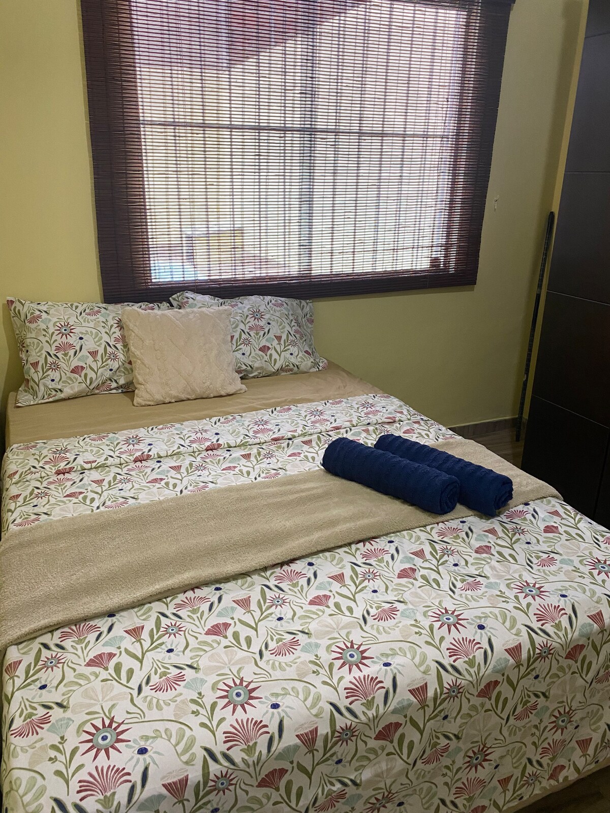 Groot appartement, verlicht, in een gesloten condo met 24-uursbeveiliging, dicht bij het strand (6 minuten met de auto en 10 minuten met de fiets), ingericht, tv, beddengoed/tafel/bad, keukengerei (fornuis, koelkast, wasmachine, koffiezetapparaat, blender, blender, fruitpers, magnetron, broodjeszetapparaat en strijkijzer), condo met zwembad, kinderspeeltuin en sportveld, een parkeerplaats. Dicht bij de markt, bakkerij, restaurant, apotheek, bushalte en taxi.