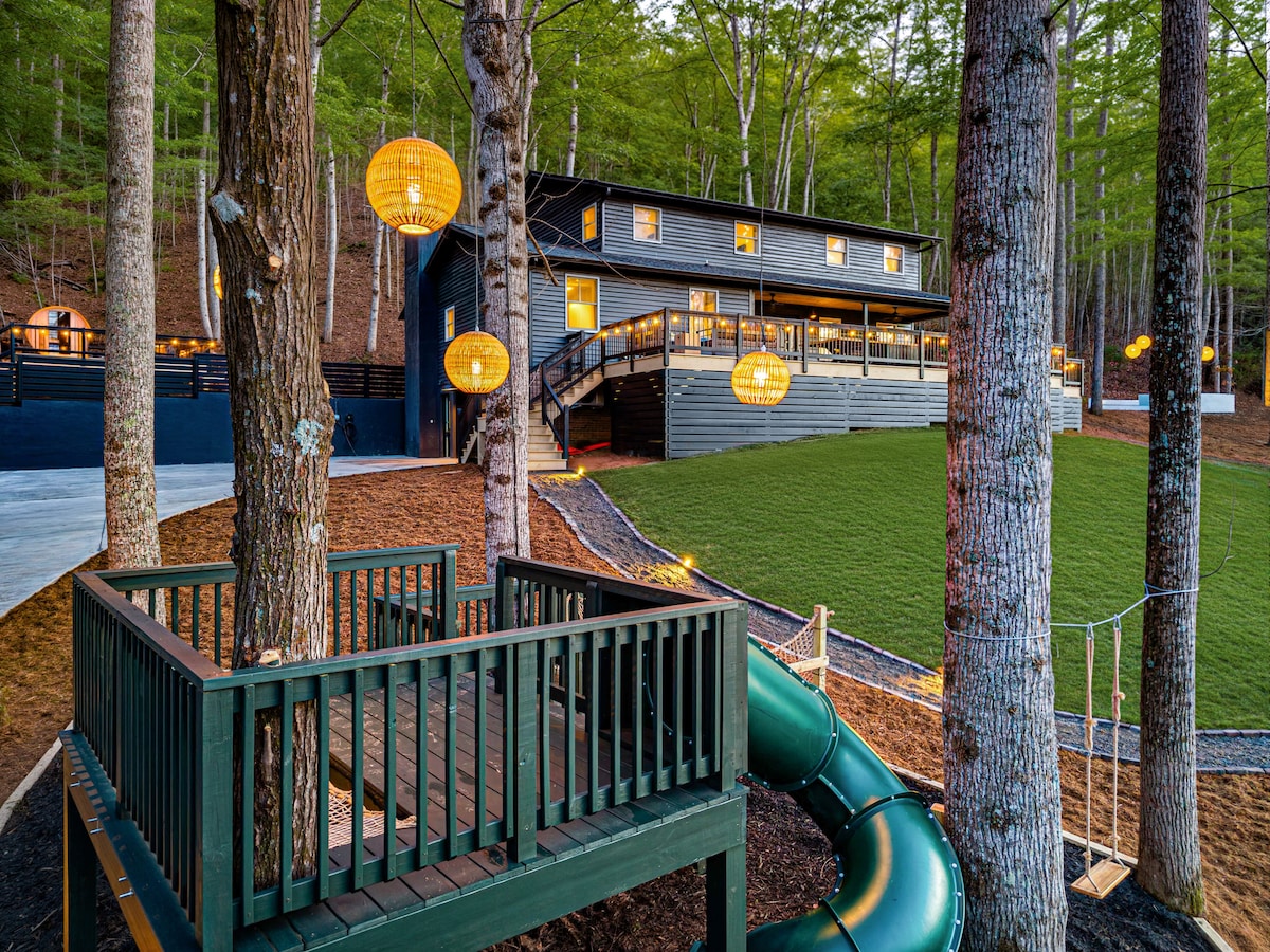 Ontspan en kom tot rust in deze vredige, stijlvolle ruimte. Dit nieuw gebouwde, Scandinavisch geïnspireerde huis geeft je het gevoel dat je er even tussenuit bent, terwijl je slechts 12 minuten van het centrum van Asheville verwijderd bent. Ontspan in het bubbelbad op het terras omringd door het laurierblad, knus voor de open haard en kijk naar een film, of bad in het bos door de kamerhoge ramen terwijl je je koffie in bed drinkt.