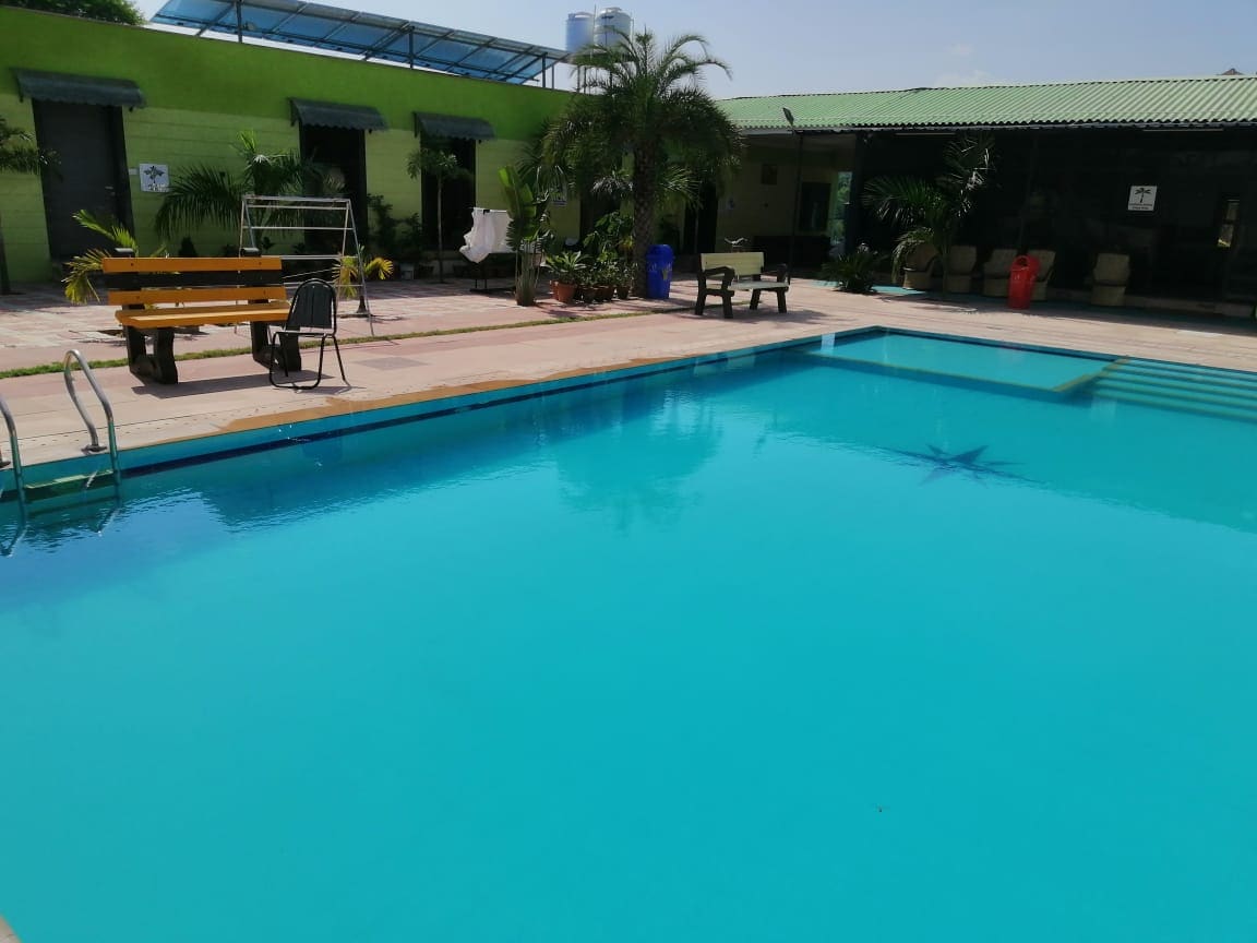 Geniet van de geluiden van de natuur wanneer je in deze unieke plek verblijft. Met twee grote slaapkamers en een keuken en lobby met wifi tv 15+ ott Het heeft een zwembad voor zowel kinderen als volwassenen en het heeft ook automatisch reinigingspompen. Het heeft een oppervlakte van 6000 vierkante voet, waarvan de helft landbouwgrond en een tuin met enkele ritten. Je zult genieten van de rustige omgeving van die plek waar je diners bij kaarslicht kunt hebben En je kunt ook eten bestellen bij zomato sweegy etc.