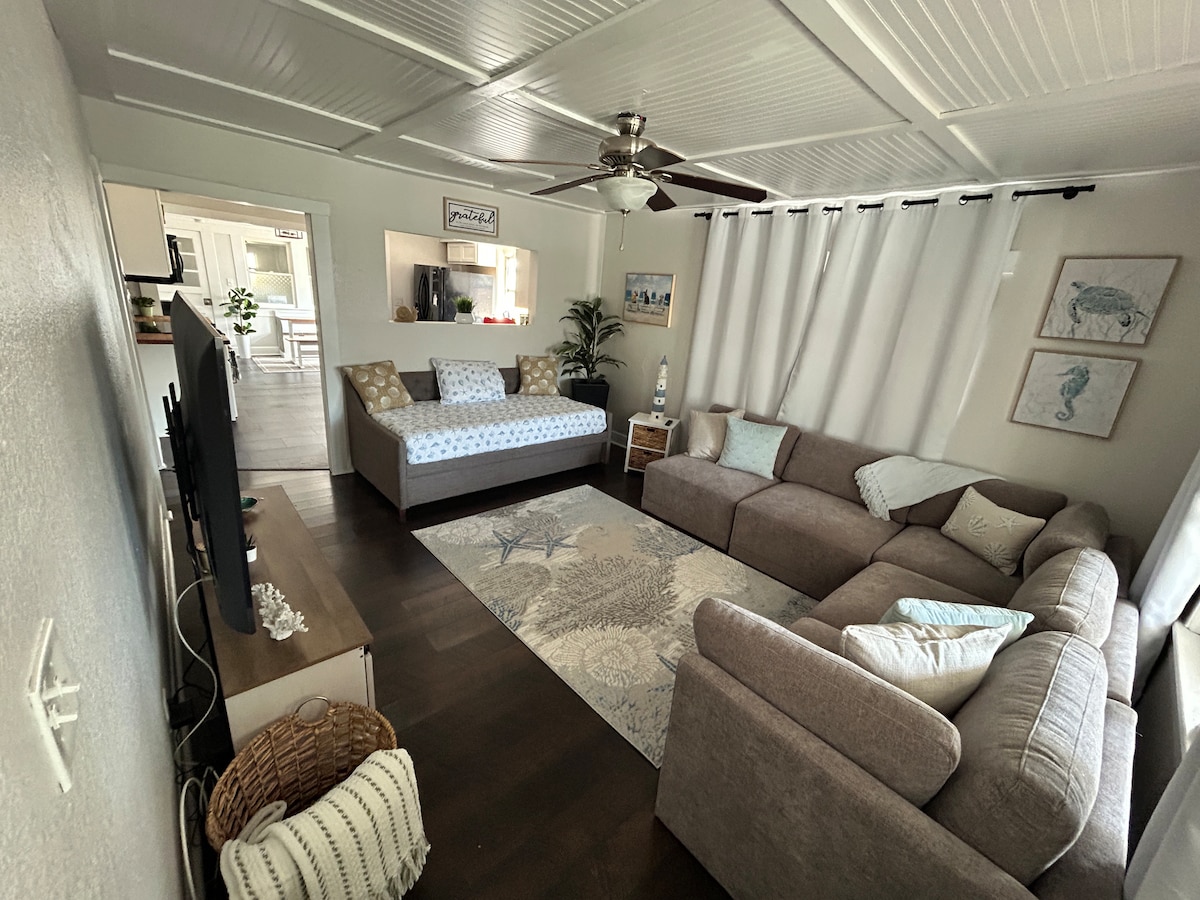 Ontsnap naar ons rustige tropische paradijs! Onze privétuin stroomt over van smaragdgroene palmbomen, exotisch gebladerte en inheemse bloemen, terwijl de overdekte patio een plek biedt om te ontspannen en te genieten van de natuurlijke geluiden van de natuur. Grillruimte, buitenzitjes, ligstoelen. 5 minuten naar Indian Rocks Beach en voorzieningen in het centrum. Maak fietstochten op de nabijgelegen Pinellas Trail en Tailor Park met onze gratis fietsen. Geniet van plezier en vissen met onze meegeleverde kajaks en spullen, gemakkelijk geladen op je auto.