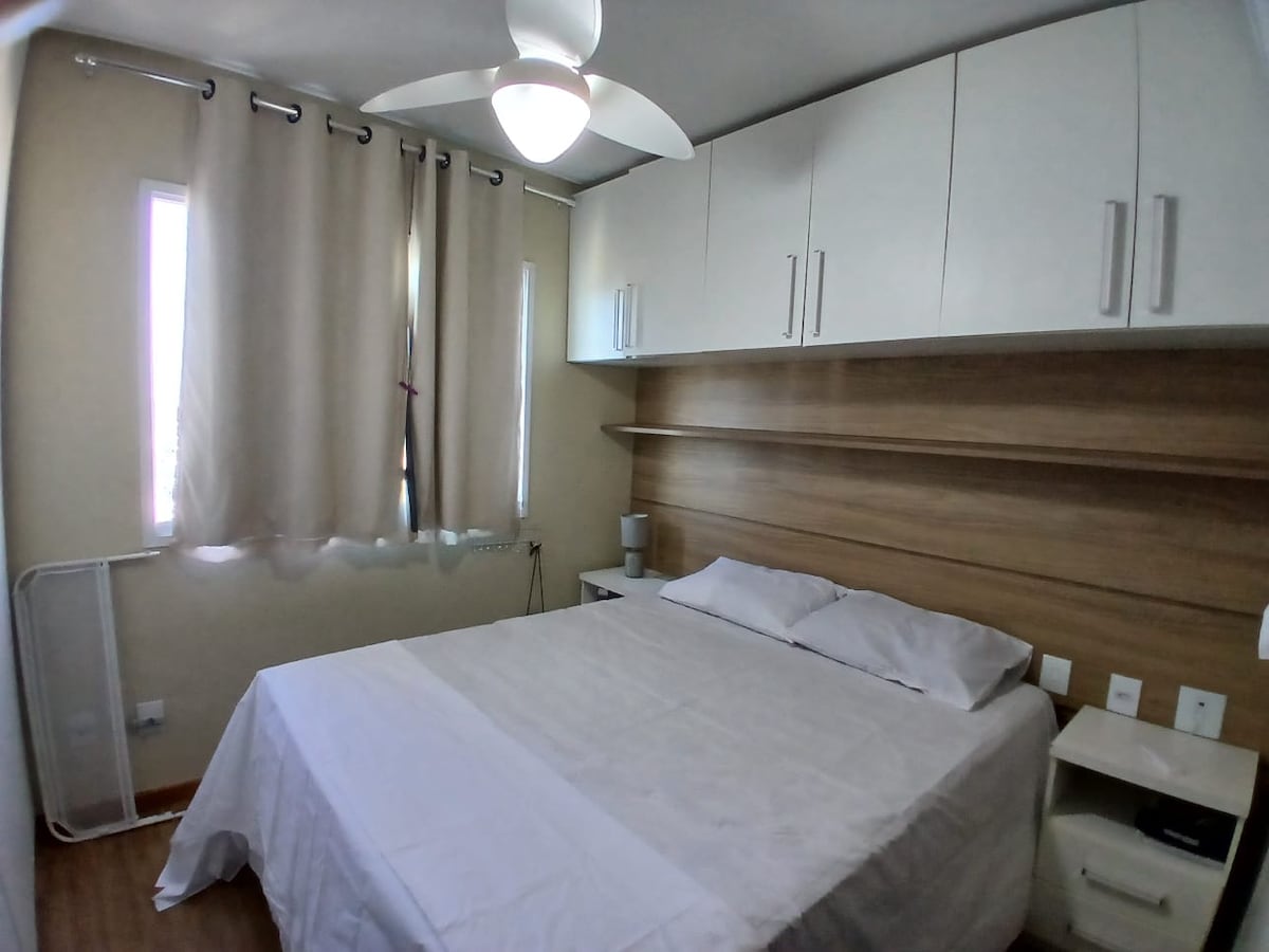 *São 2 quartos para 3 pessoas*. São dois quartos ; um com cama de casal, e ar condicionado ,uma mesa com cadeira; outro com uma cama de casal, dois colchões de solteiro e um ventilador e uma arara de roupa . Geladeira, tv, Wi-Fi , mesa e 4 cadeiras, sofá, louças, liquidificador, sanduicheira, uma vaga na garagem. Não paga, água , Gás , IPTU e nem Condomínio . Luz apenas consumo . Várias áreas de lazer, 2 Piscinas, 2 quadras , área pra churrasco, portaria 24 horas. Entrada só com autorização