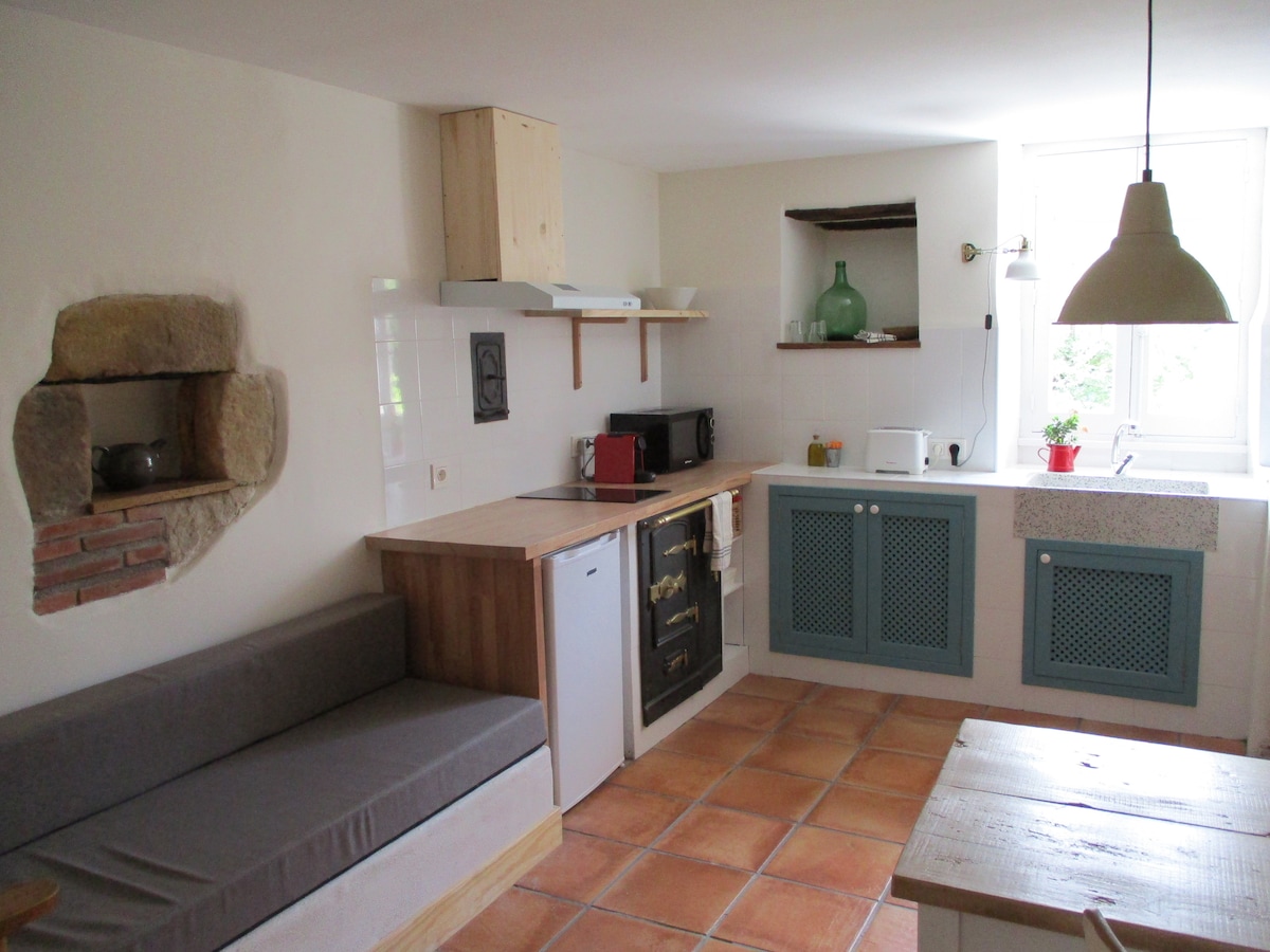 Studio-appartement voor 2 personen in Caserio Agiñaga tussen bossen en weiden, in de buurt van het natuurpark van Aiako harria en de GR-11, zonder televisie, op een rustige plek, maar goed verbonden met San Sebastian, Hondarribia, Hendaya San Juan de Luz en de hele Bidasoa-vallei. In het geval dat de host daar woont, zijn er twee andere soortgelijke kleine studio's. Registratienummer: TSS00124