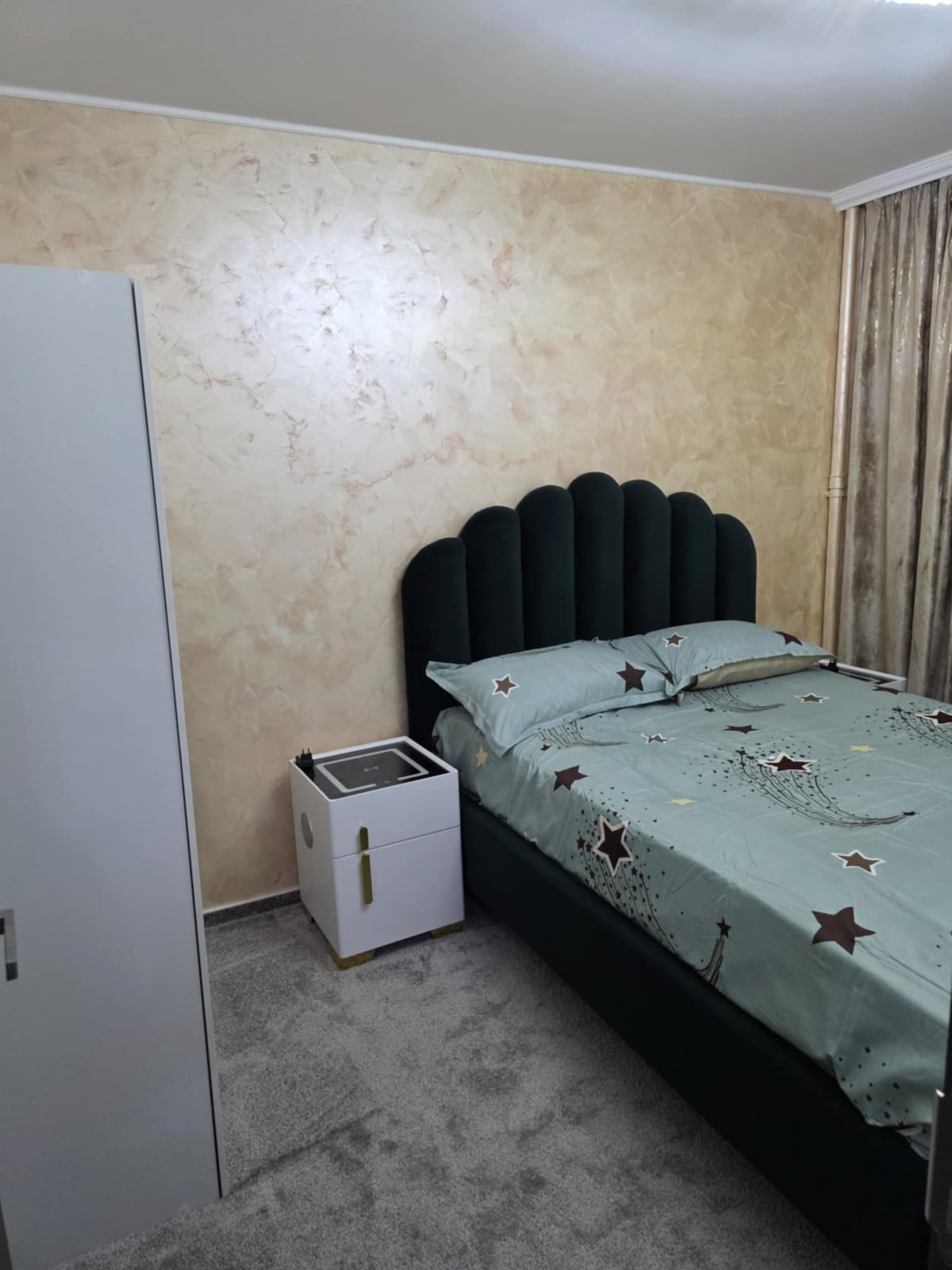 Appartement met 1 slaapkamer op een goede locatie met tweepersoonsbed, uitgeruste keuken, persoonlijke badkamer, bureau en een gezellig balkon met geweldig uitzicht op de straat -8e verdieping. Wifi - Digi Net Fiber Link 500, kabel-tv, airconditioning, haardroger In de buurt van Sun Plaza Mall, metrostation Piata Sudului, Bazar Big Berceni, Piata Sudului Market 8 minuten met de metro naar Old Town