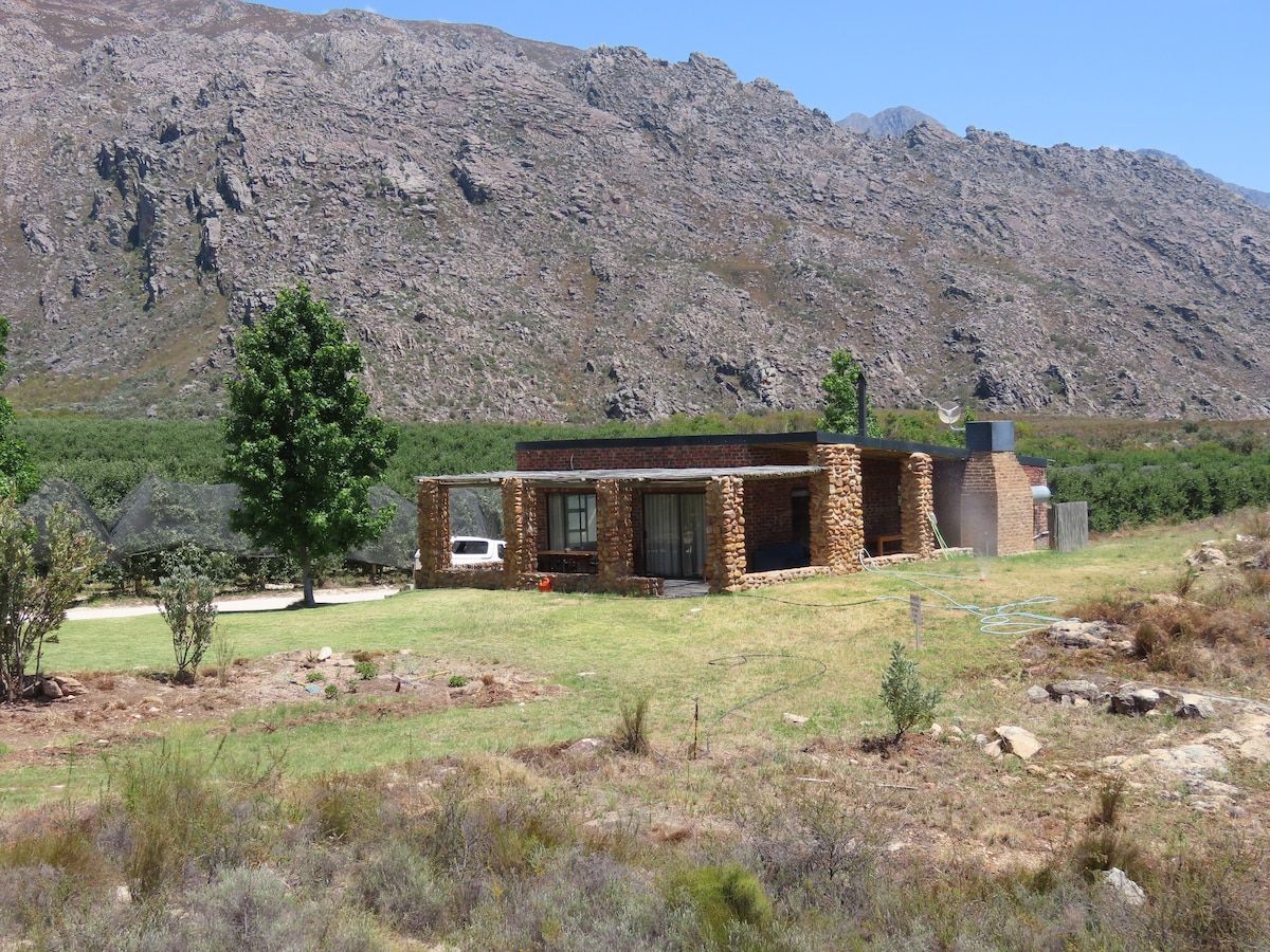 The quaint little cottage is in between the guava orchid of a working farm with beautiful views of the mountain. In season time you can pick and eat guavas.( Apr- Oct). Guests can relax in the #Kolkolhottub under the stars and read a book. There is lots of space to mountain bike or walk. Have a barbecue inside or outside. You can wonder around the farm or visit many interesting places in town, or hike up 22 Waterfalls or Groot Winterhoek Reserve