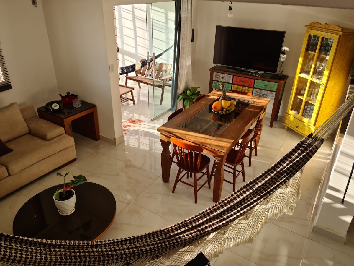 Welkom bij Casa Beija Flor, gelegen in Serra Negra - Pe, een plek met ongeëvenaarde schoonheid, mild klimaat, temperatuur variërend van 18 tot 22 graden. Het hoogtepunt van het huis is een bevoorrecht uitzicht op de bergen, waar je zult genieten van een prachtige zonsondergang. Voor de koudere nachten is het grondvuur de ideale plek om op te warmen en een sterrenhemel te bewonderen, met een goede wijn, in het gezelschap van vrienden of familie. We zijn 1 km van de belangrijkste bars en restaurants.