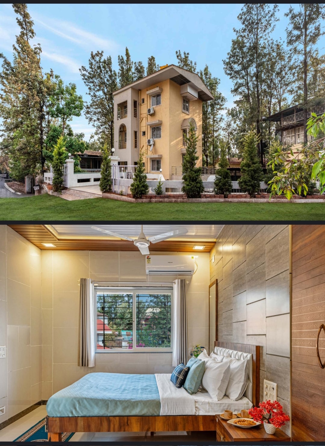 Luxe 6BHK villa met uitzicht op de bergen, frisse lucht en een privézwembad — perfect voor gezinsuitjes of het organiseren van evenementen. Beschikt over ruime lounges, elegante slaapkamers met balkons, een complete keuken, smart-tv's, wifi en dagelijkse schoonmaak. Geniet van buiten dineren, weelderige tuinen en een serene omgeving. Ideaal voor feesten of rustige uitstapjes, op slechts enkele minuten van schilderachtige paden en lokale bezienswaardigheden. Een perfecte mix van natuur, comfort en stijl.