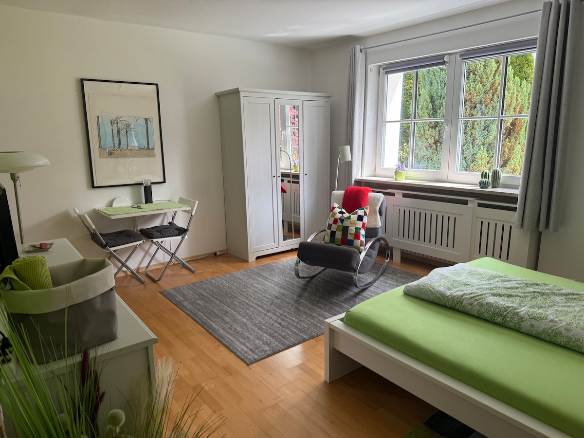 alleen voor 1 of 2 personen (inbegrepen Kinderen)! Grote kamer (30 m ²) met een kleine tuin, eigen keuken en grote eigen doucheruimte (20 m ²). 35 km van München, bus naar de S-Bahn-verbinding op 100 meter afstand, Starnberger See (ongeveer 16 km), in de buurt van Bad Tölz, Tegernsee en de bergen.