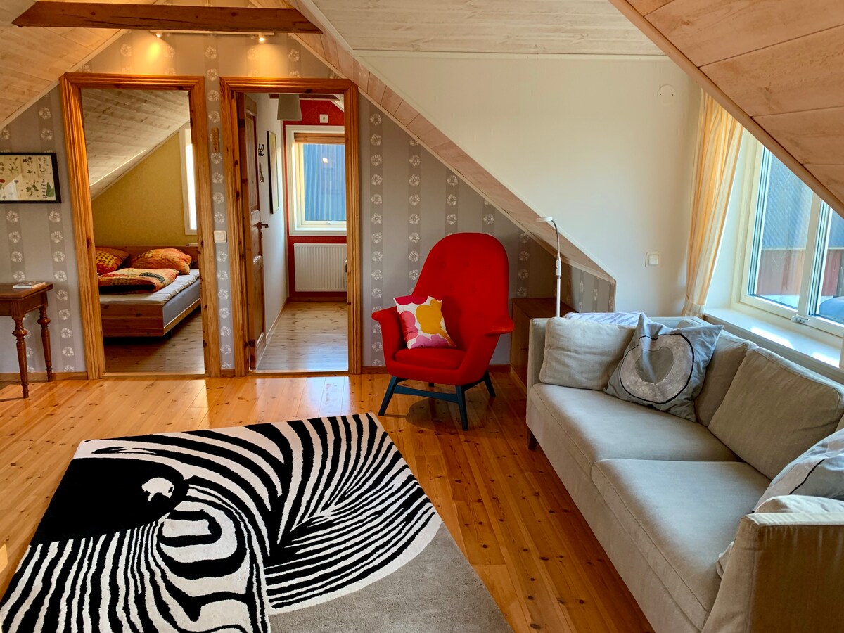 Onze boerderij ligt dicht bij de stad in een kleine oase in de wijk Hovshaga. 54 vierkante meter ontworpen om een rustige plek dicht bij de meeste dingen te creëren. Een kachel die warmte en licht geeft, geeft deze studio een gezellige sfeer. De accommodatie heeft ook een grote badkamer met douche en een goed uitgeruste keuken die uitnodigt om te koken. Parkeren kan direct naast de deur, winkel en tankstation binnen 5 minuten en gemakkelijke verbindingen met zowel bus en fiets!