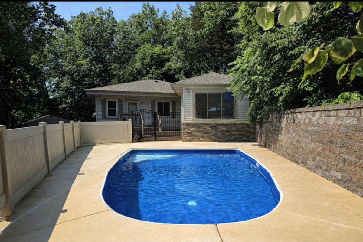 Ontspan en dompel jezelf onder in de uitnodigende charme van onze gezellige A-woning, genesteld aan de rand van Pekin, Illinois. Of je nu een boekenliefhebber bent die op zoek is naar het perfecte hoekje of een vriendengroep die op zoek is naar een comfortabel toevluchtsoord, deze onlangs bijgewerkte hut belooft een heerlijke ontsnapping. Als de avond valt, kun je zelfs de rustgevende roep van een uil uit het omliggende bos horen, wat bijdraagt aan de rustige sfeer. De hut biedt een warme sfeer met comfortabele meubels en een charmante open haard🦉