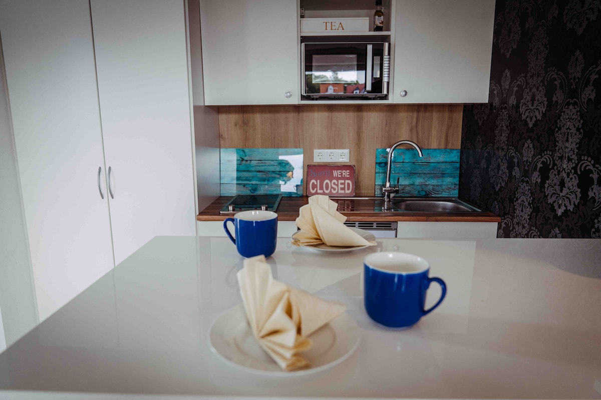 Centrale verwarming, vloerverwarming, volledig gevulde keuken met eettafel voor 4 personen, extra groot bubbelbad met regendouche, dubbele eiken slaapkamer, woonkamer met Chesterfield slaapbank (voor 2 personen), secretaresse, TV, Netflix, Wifi, balkon, terras, whirlpool en infraroodcabine Betaal de schoonmaakkosten die niet via Airbnb in rekening worden gebracht (€ 50, -) en, indien nodig, de hondentoeslag (€ 20, -) contant ter plaatse. Voor boekingen via onze website is de prijs (2 personen) € 189/nacht.