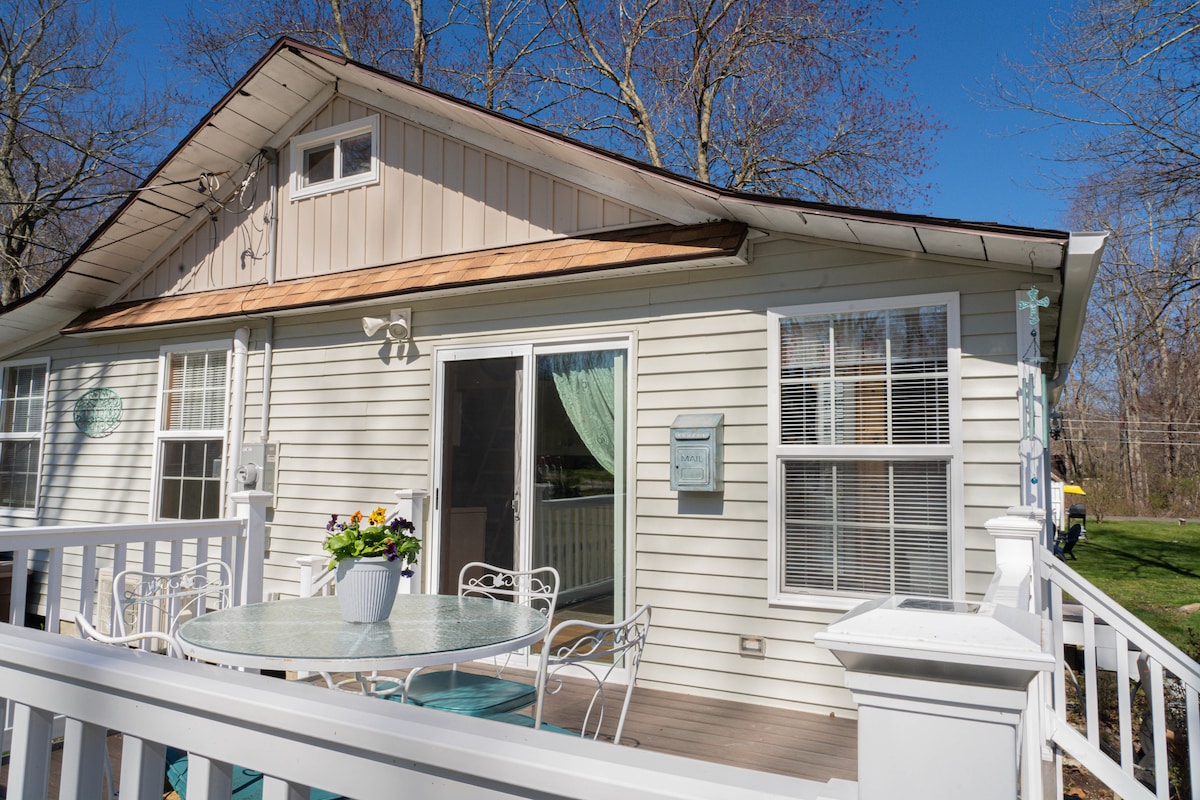 LGBTQ friendly. Our 1915 Arts & Crafts bungalow's spacious in-law suite offers driveway parking, private entrance, sunroom, king bedroom, en-suite bath, kitchenette w/fridge, micro, coffee maker, toaster. Relax in bed with 40" HDTV with Amazon Prime, HBO Max, Netflix, premium cable. Enjoy private gardens to sun, read a book or cup of coffee. Short drive to 4 Vineyards, Theater and the train station. I am not responsible for wifi.
