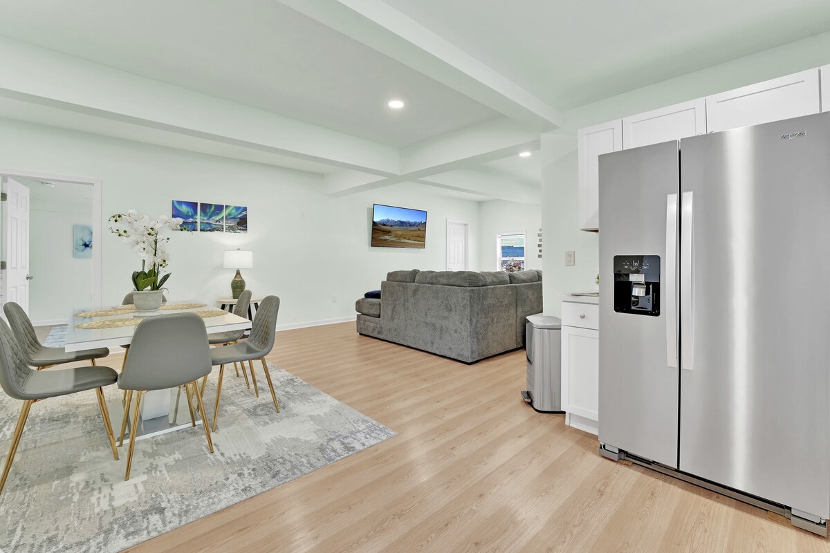 Lake George premier location apartment with your own entrance and parking spot for this renovated VERY clean Bedroom, Amenity Stocked Kitchen and Bathroom and washer and dryer. Easy lake access that is just steps from our back deck to private access to the lake for you to sunbathe, swim or launch our included kayaks. Perfectly located for all seasonal activities. Walk to three local favorite restaurants. Just a few minute drive to Lake George Village.