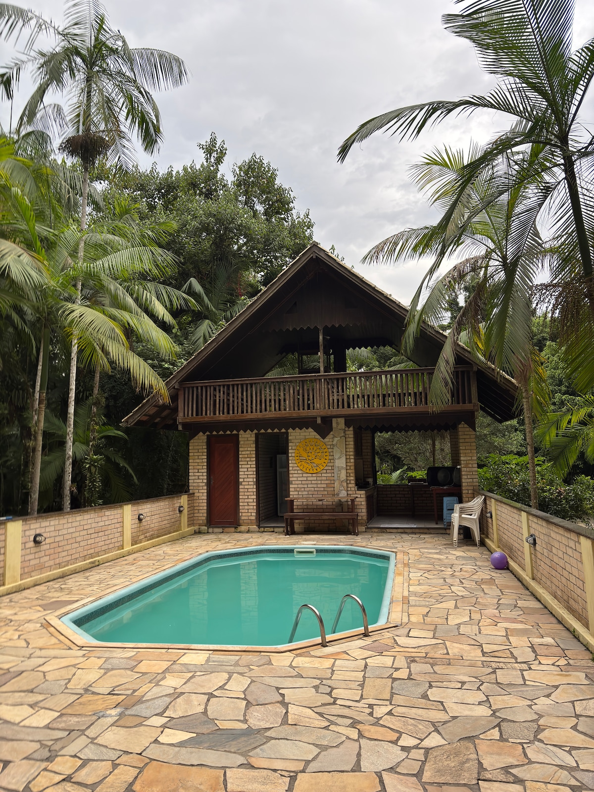 Refúgio no meio da natureza. Descanse em uma casa de campo aconchegante cercada por muito verde e tranquilidade. O espaço possui 2 quartos com 3 camas de casal, ideal para famílias ou amigos. Conta com piscina, ampla área de festas e deck de madeira com redes para relaxar. A natureza é o grande destaque: há acesso ao rio a apenas 10 m da casa e uma cachoeira a 150 m, perfeitos para momentos únicos e contato com a natureza.