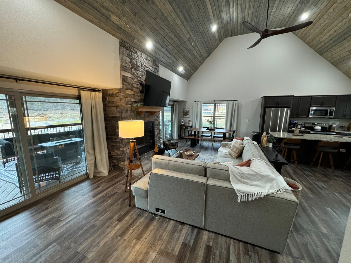 Gloednieuw modern appartement met twee slaapkamers, stijlvol comfort en een adembenemend uitzicht op Lake Taneycomo vanaf de derde verdieping. Word wakker met prachtige zonsopgangen over het water en geniet van een serene retraite met veel ruimte om te ontspannen. Gelegen in een rustige omgeving, maar op slechts enkele minuten van Bransons topattracties, theaters, restaurants en winkels. Perfect voor gezinnen, koppels of vissers, en ook hondvriendelijk, dus neem je harige vrienden mee voor de ultieme uitstap naar het Branson-meer.