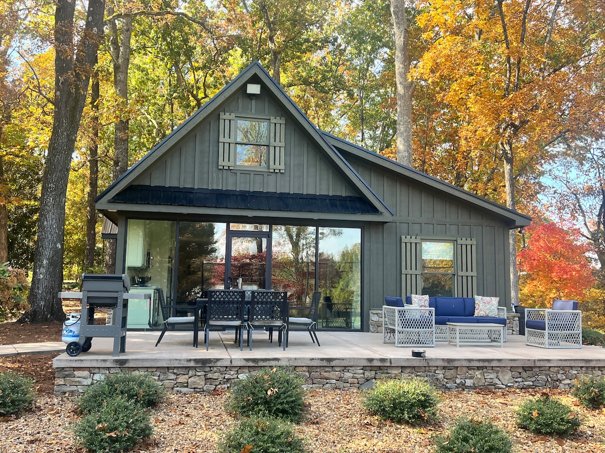Een mooie, romantische hut zoals poolhouse, twee verdiepingen, allemaal houten interieur en afgewerkte woonkamer, slaapkamer en badkamer. Prachtig uitzicht op bossen en zwembad vanaf dek en balkon. Flatscreen, gashaard en zwembad beschikbaar, maar niet verwarmd in de winter. De hut biedt slaapplaats voor 4 personen, twee in de slaapkamer met queensize bed en twee in de banketten van de woonkamer. Respecteer ons tarief schema extra gasten na de eerste 4 zijn verplicht om te betalen $ 25/nacht per persoon.
