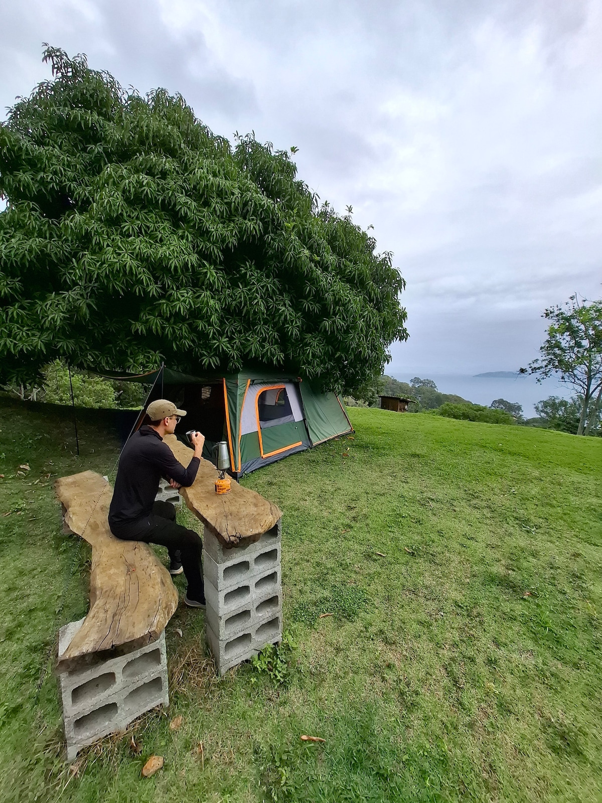 Glamping dos Sonhos é uma experiência campista perfeita para casais ou solo. Oferecemos uma barraca grande que se pode andar em pé dentro, ideal para 2 pessoas com cama de casal inclusa e um visual vislumbrante. E você não precisa montar nada! A ideia é acampar com conforto, tranquilidade e privacidade em um local seguro e em total contato com a natureza . Oferecemos chuveiro quente, mesa de pic-nic, área para fogueira e a vista privilegiada de nosso mirante panorâmico de frente para o mar.