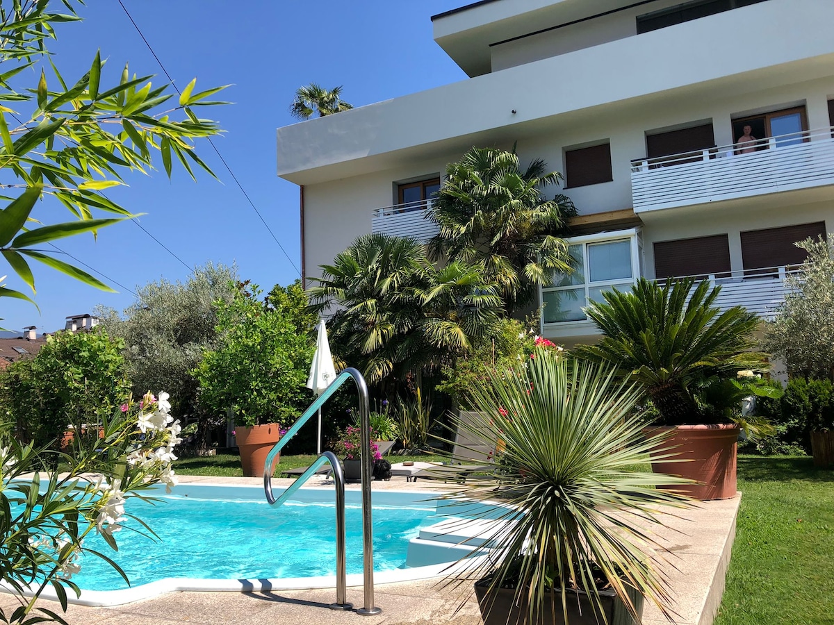 Ontspan in je lichte, ruime appartement met prachtig uitzicht op de bergen. Ontspan in de weelderige tuinoase met een zwembad, bubbelbad en buitendouche – een zeldzaam juweeltje in de omgeving. Geniet van je eigen balkon en volledig uitgeruste keuken. Perfect voor stellen, groepen en families. Ideaal gelegen voor ski- en wandelavonturen en wandelen door de stad. Gratis parkeren inbegrepen.