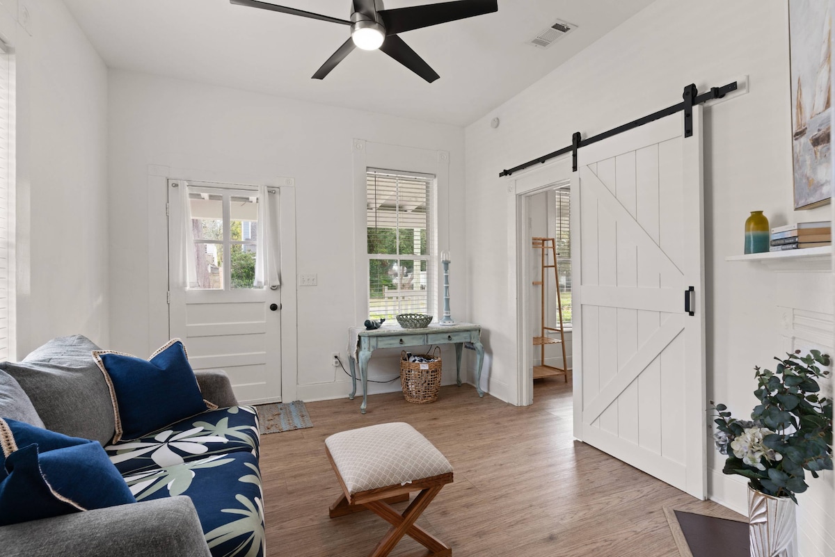 Welcome to your very own island cottage treehouse - all new construction with a beach community theme, laced with Southern charm. To reach your 600 sq/ft studio cottage, use the private entrance to access the stairway. Along with a full bath and a convenient kitchenette, you are welcomed to a large open living space with double sliding glass doors that lead you to your own 180 sq/ft private balcony nestled among the live oaks. All guest bookings w favorable prior history will be considered.