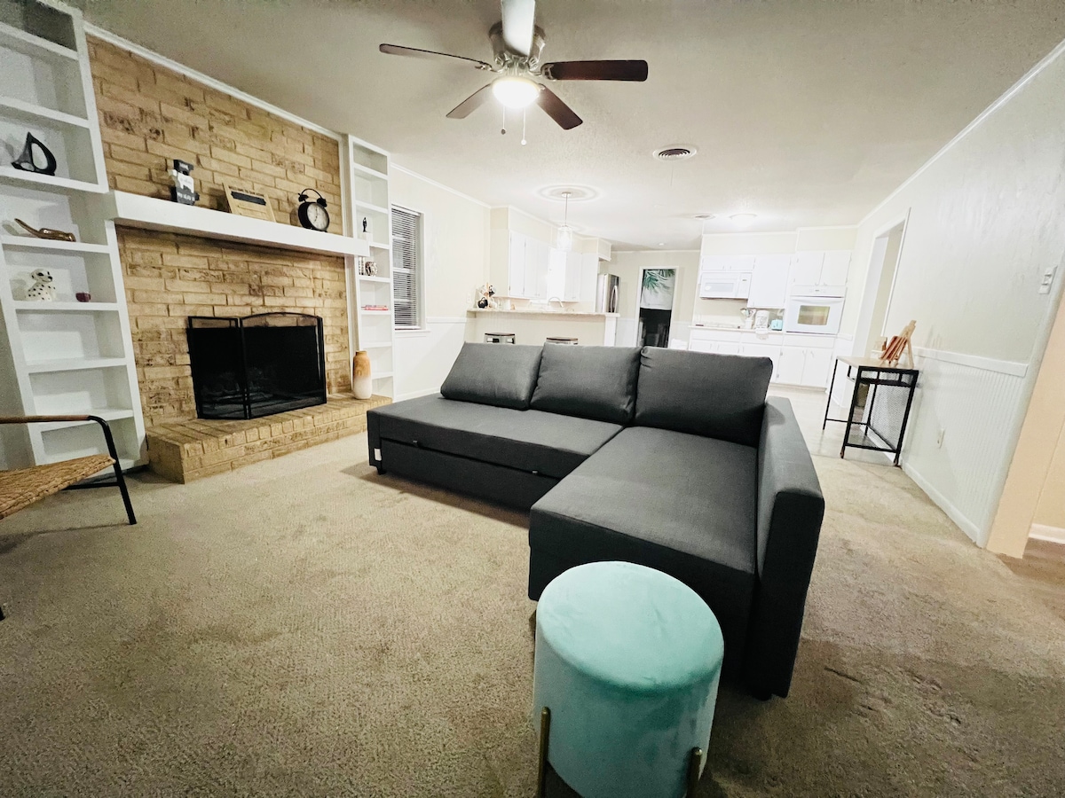 🎯 Volledig thema Denison-uitje Woonkamer in🎬 theaterstijl voor filmavonden 🎮 Gaming slaapkamer met retro console + 2 arcade games 🌌 Star Wars-slaapkamer voor Jedi-dromen 🚚 Klassieke vrachtwagen hoofdslaapkamer 🌳 Schaduwrijke achtertuin en groot balkon voor grillen en wijn 🍷 Dicht bij winkels, restaurants en wijngaarden in het centrum 🏞️ Korte rit naar Lake Texoma, Choctaw en meer 🛏 3 bedden | 🛁 2 badkamers | 6 slaapplaatsen ✔ Snelle wifi ✔ Smart-tv's ✔ Gaming ✔ Gevulde keuken ✔ Wasmachine/droger ✔ Gratis parkeren