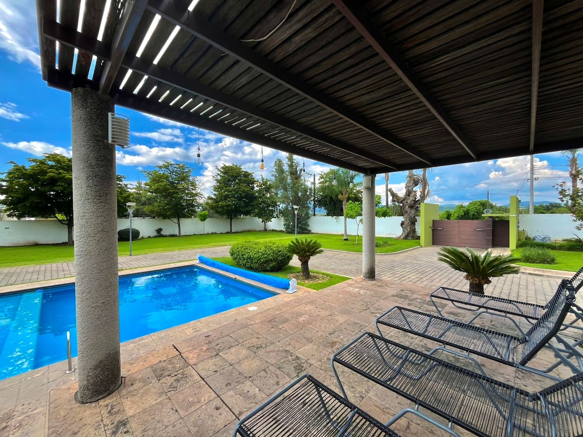 Espacio Familiar de campo con Alberca y Jardín
